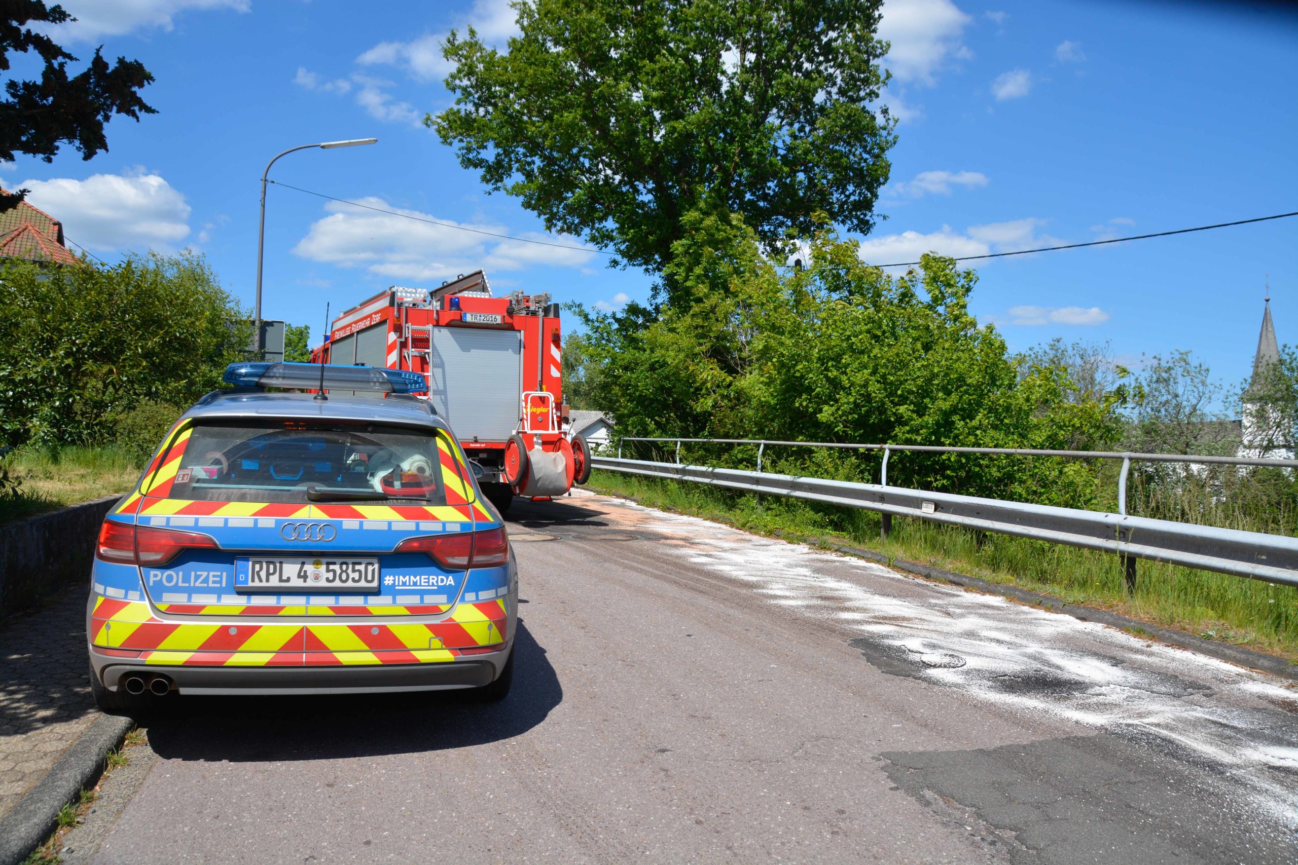 Tankhalterung löste sich – 3,5 KM der B 407 mit Dieselkraftstoff verunreinigt.
