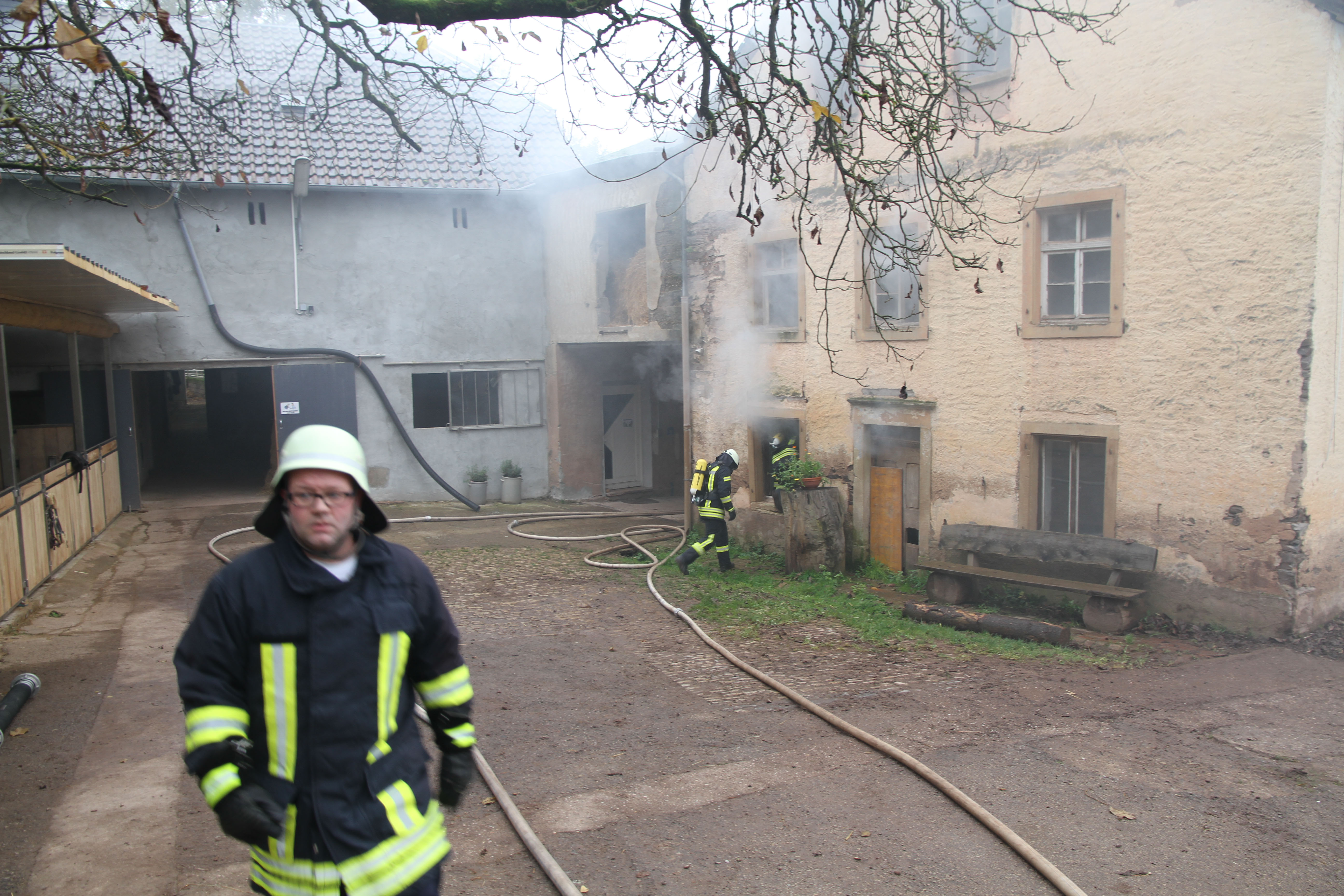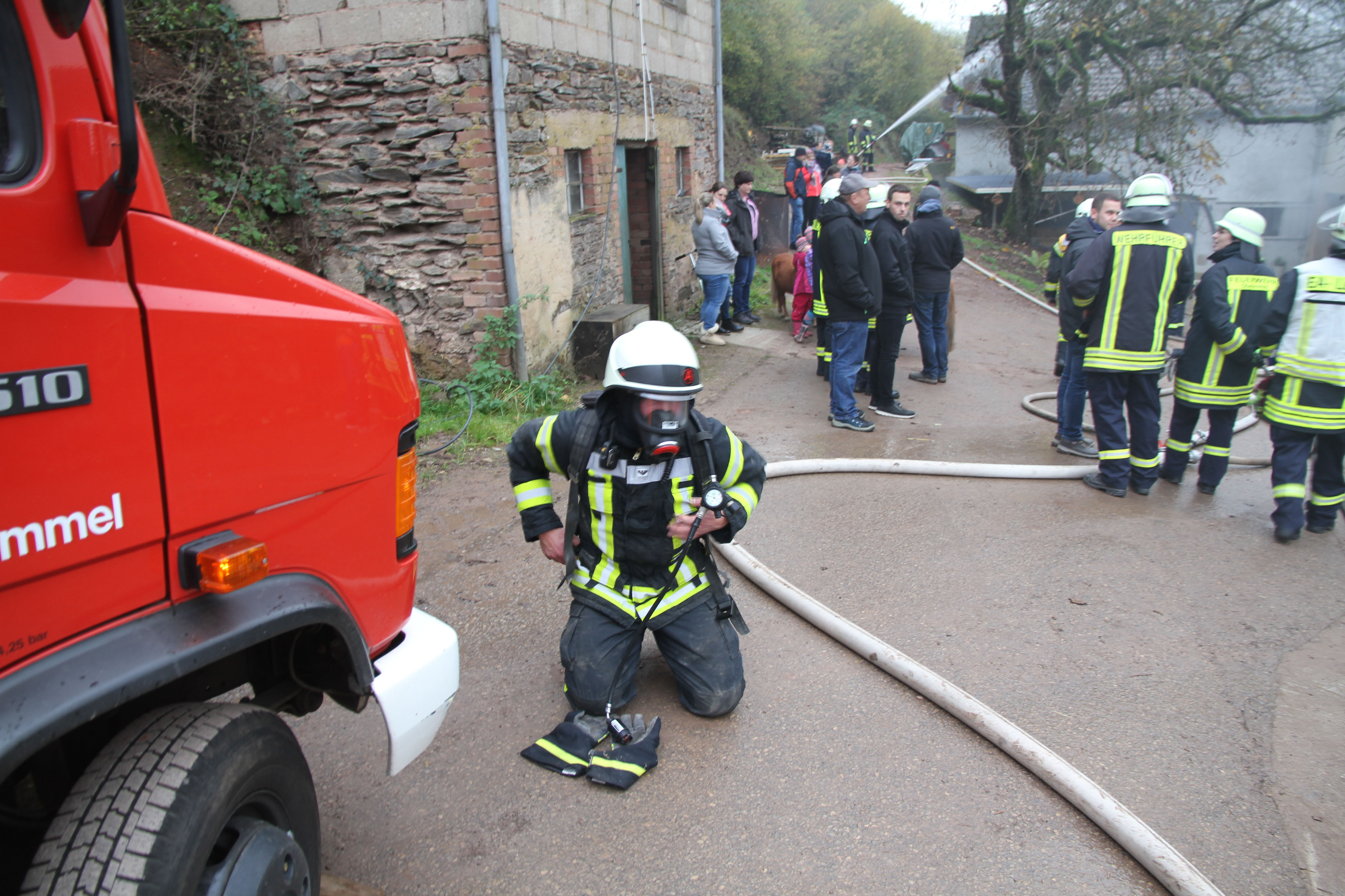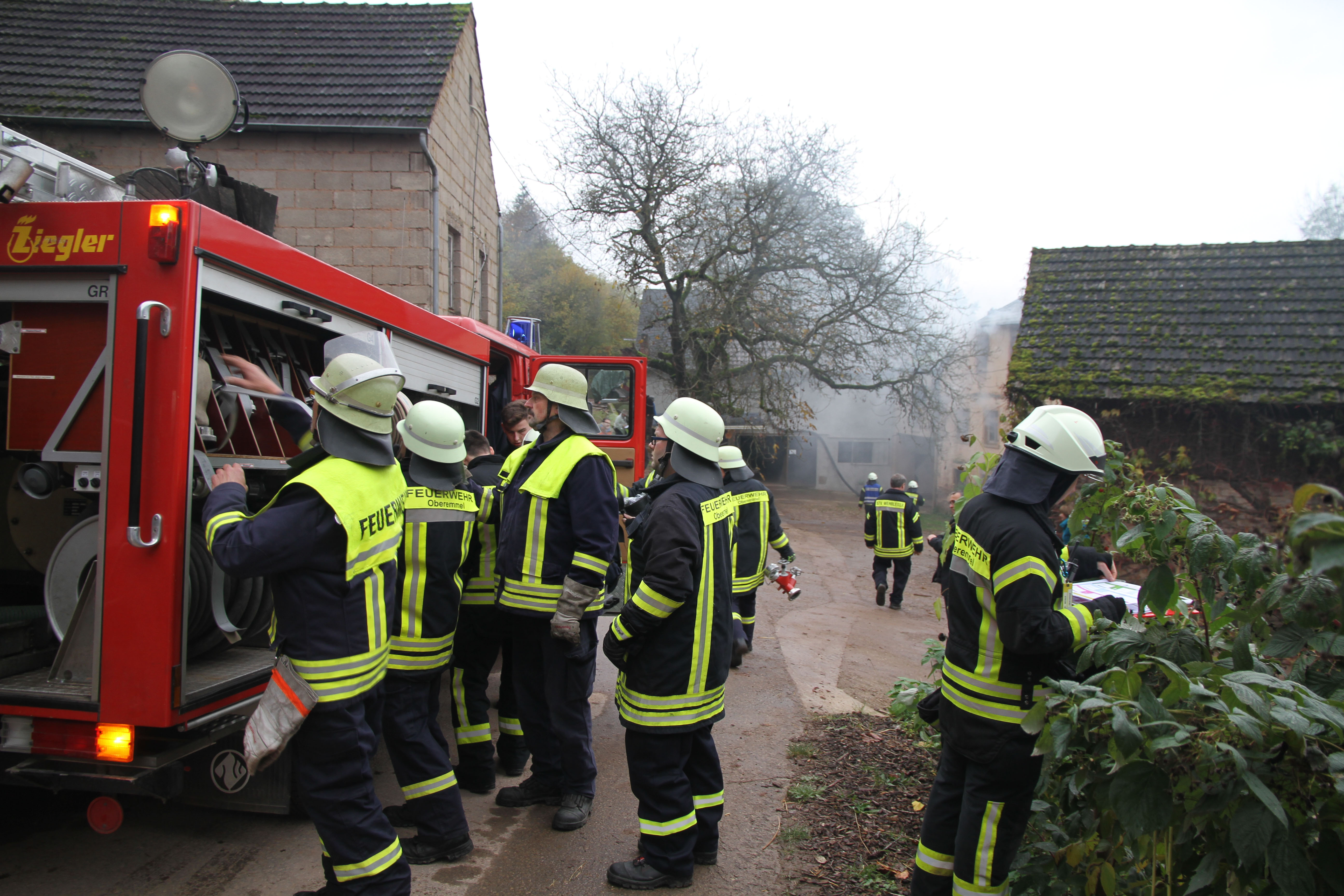 Oberemmel. Am vergangenen Samstagnachmittag heulten gegen 14.15 Uhr die Sirenen in Oberemmel. Aus dem im Tal zwischen Oberemmel und Wiltingen gelegenen Pferdepension „Emmeler Mühle“ wurde von Augenzeugen und Betreiber der Pension eine starke Rauchentwicklung aus dem Anwesen gemeldet.