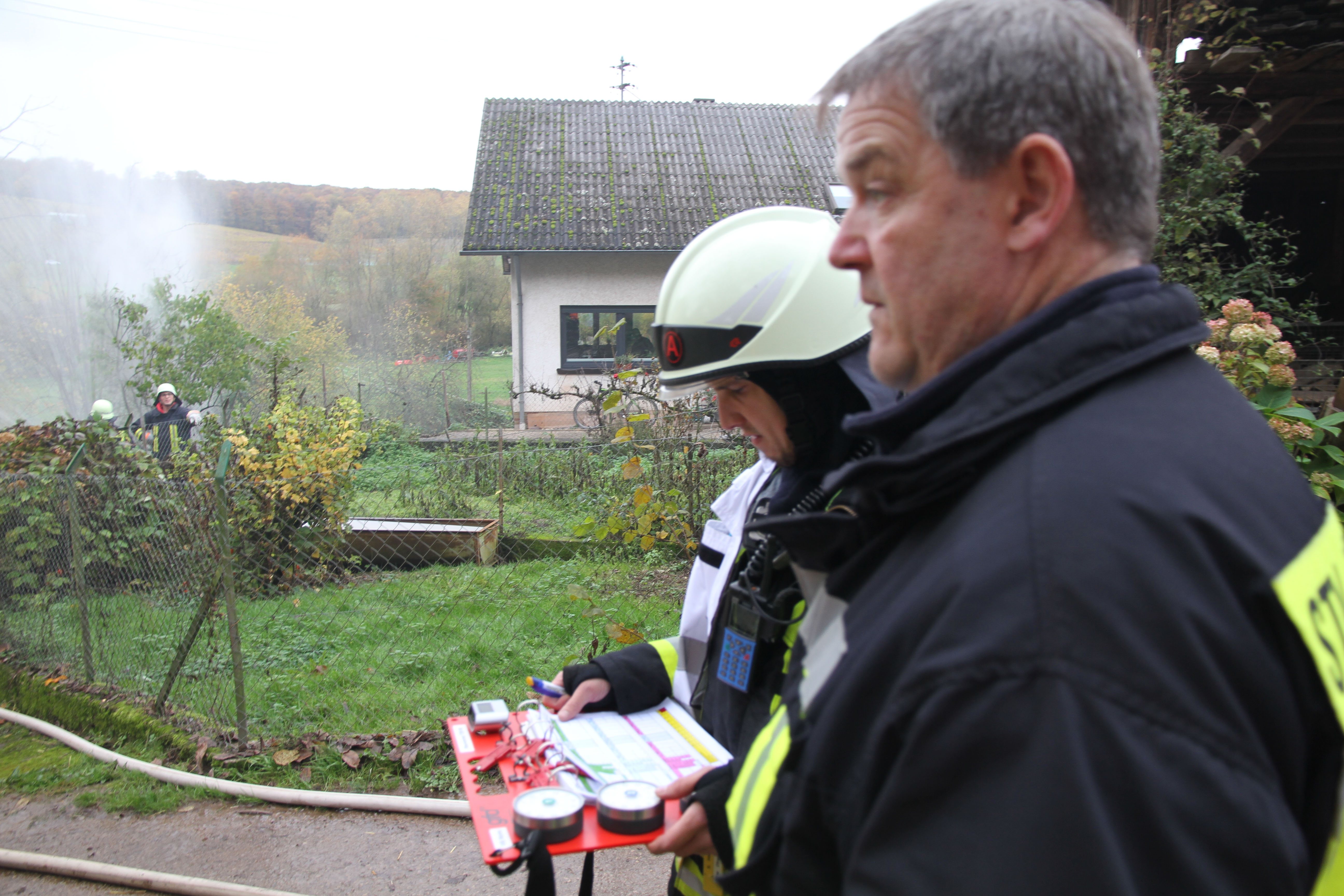 Wehrführer Andreas Schmitt und Ralf Kieslich dankte den ehrenamtlichen Kräften und der Jugendfeuerwehr für ihr Arrangement an der Gesellschaft. Es war ein Übung, die sehr konzentriert, übersichtlich und einen hohen Ausbildungsstand der Wehrleute zeigte. Es gab keine nennenswerte Manöverkritik. In der Besprechung zeigte sich doch ein teilweise Stirnrunzeln; was wäre, wenn solch ein Realeinsatz unter diesen Bedingungen an einem normalen Werktag passieren würde. Den es war schließlich ein Samstagnachmittag.