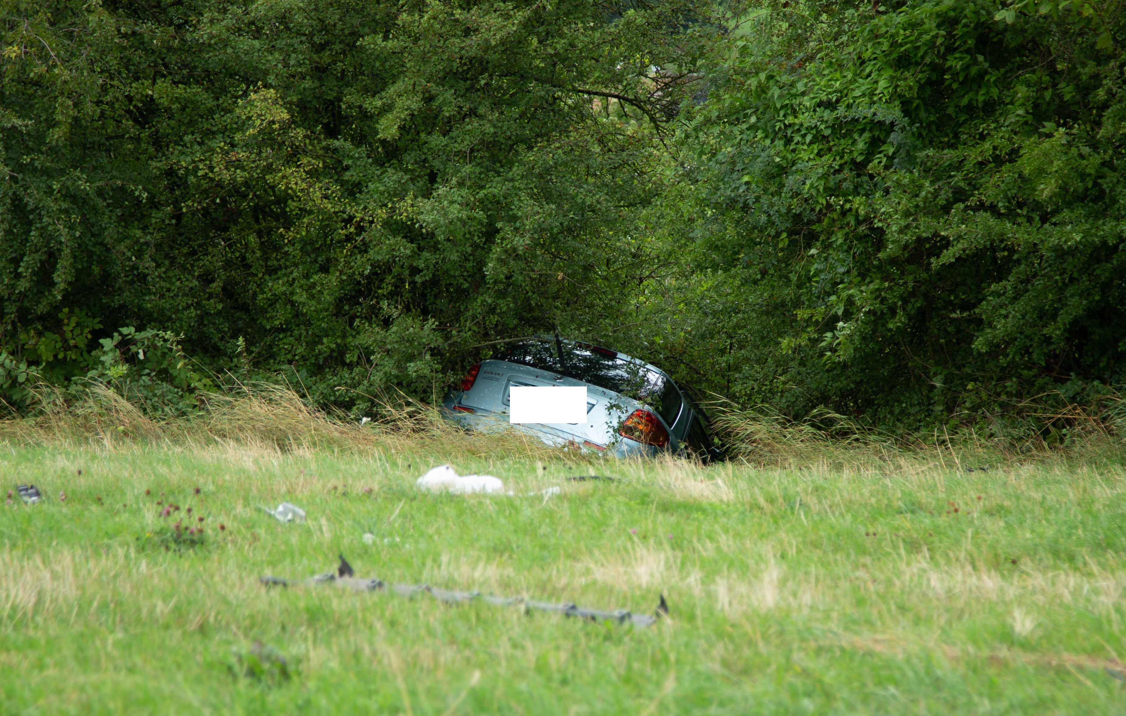 Ein PKW ist dort von der Fahrbahn abgekommen und auf dem Feld mit einem Baum kollidiert. Erst in einer Böschung kam das Fahrzeug zum stehen. Gegen 09:00 Uhr morgens bemerkte eine Autofahrerin Trümmerteile auf der Fahrbahn und verständigte die Polizei.