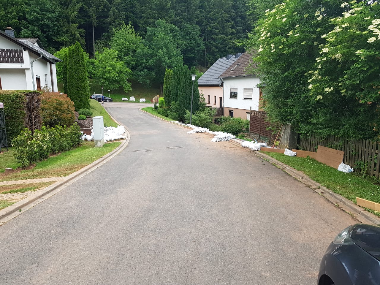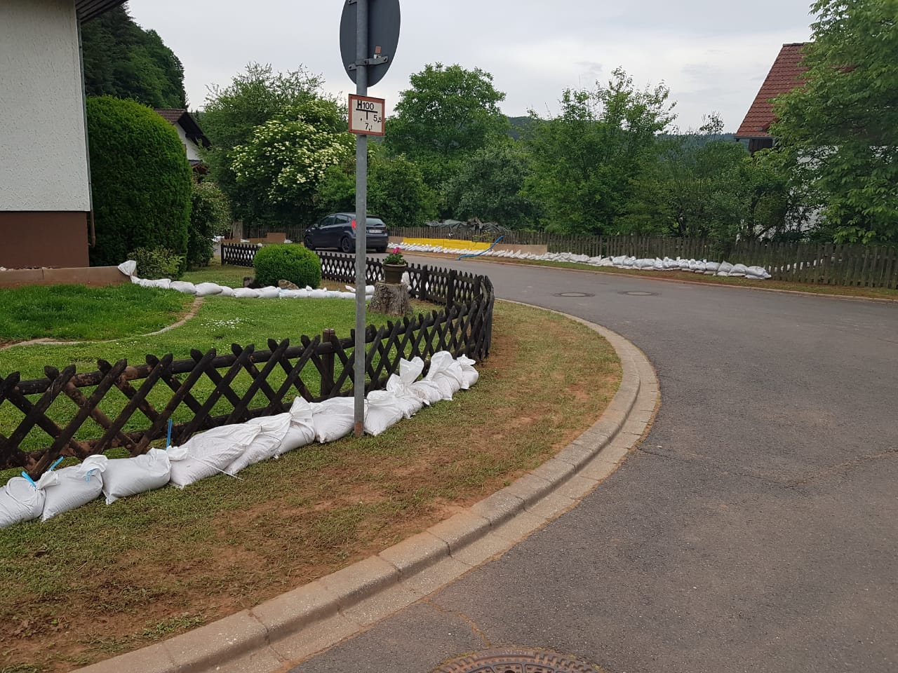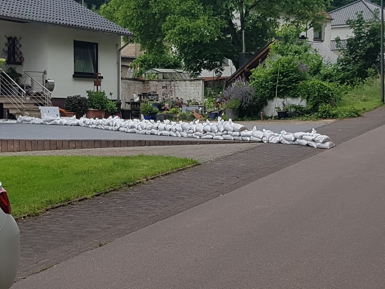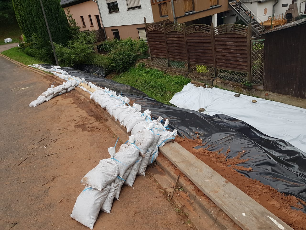 Betroffene, Nachbarn und Freunde füllten in Eigenleistung hunderte Sandsäcke und verteilten diese vor allem Unterm Halstenberg und im Görgenthal. Auch der Ortsbürgermeister Roland Konter packte mit an.