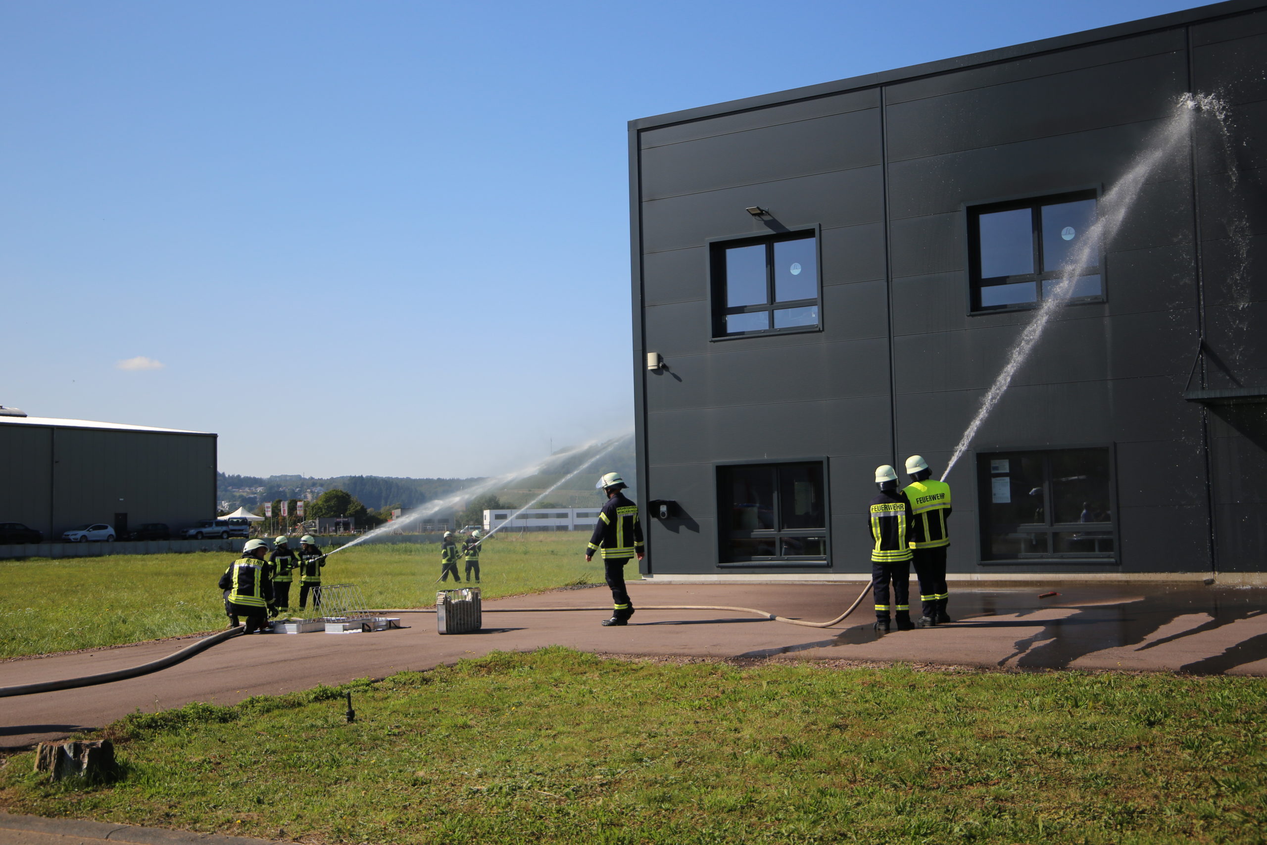 Zahlreiche theoretische Lehrstunden vermittelten zuvor die Sachkenntnisse der Feuerwehrtechnik und deren Anwendung bei den Einsätzen. Es erfolgte ein Abschlussübung in Form einer Brandbekämpfung einer Industriehalle im Industriegebiet Irscherstrasse in Saarburg. Einen besonderen Dank gilt der Geschäftsführung der Firma Leslii GMBH für die Bereitstellung des Übungsobjektes.