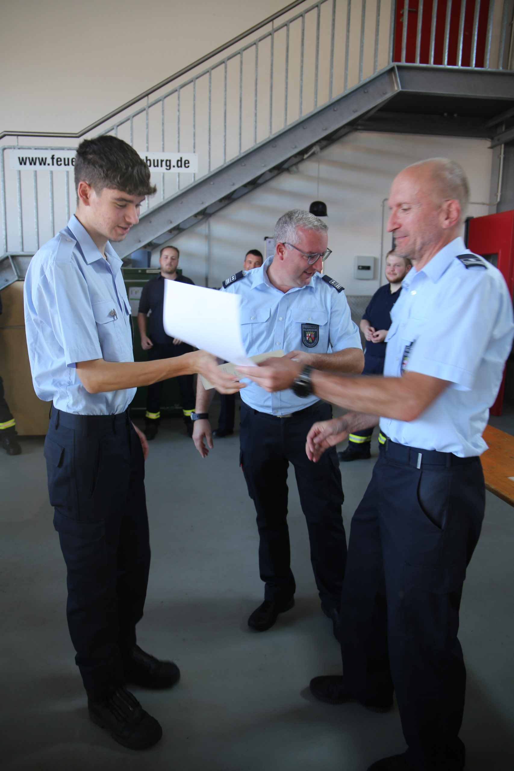 Es erfolgte die Gratulation der Teilnehmer, die Übergabe der Urkunden und Schulterklappen.