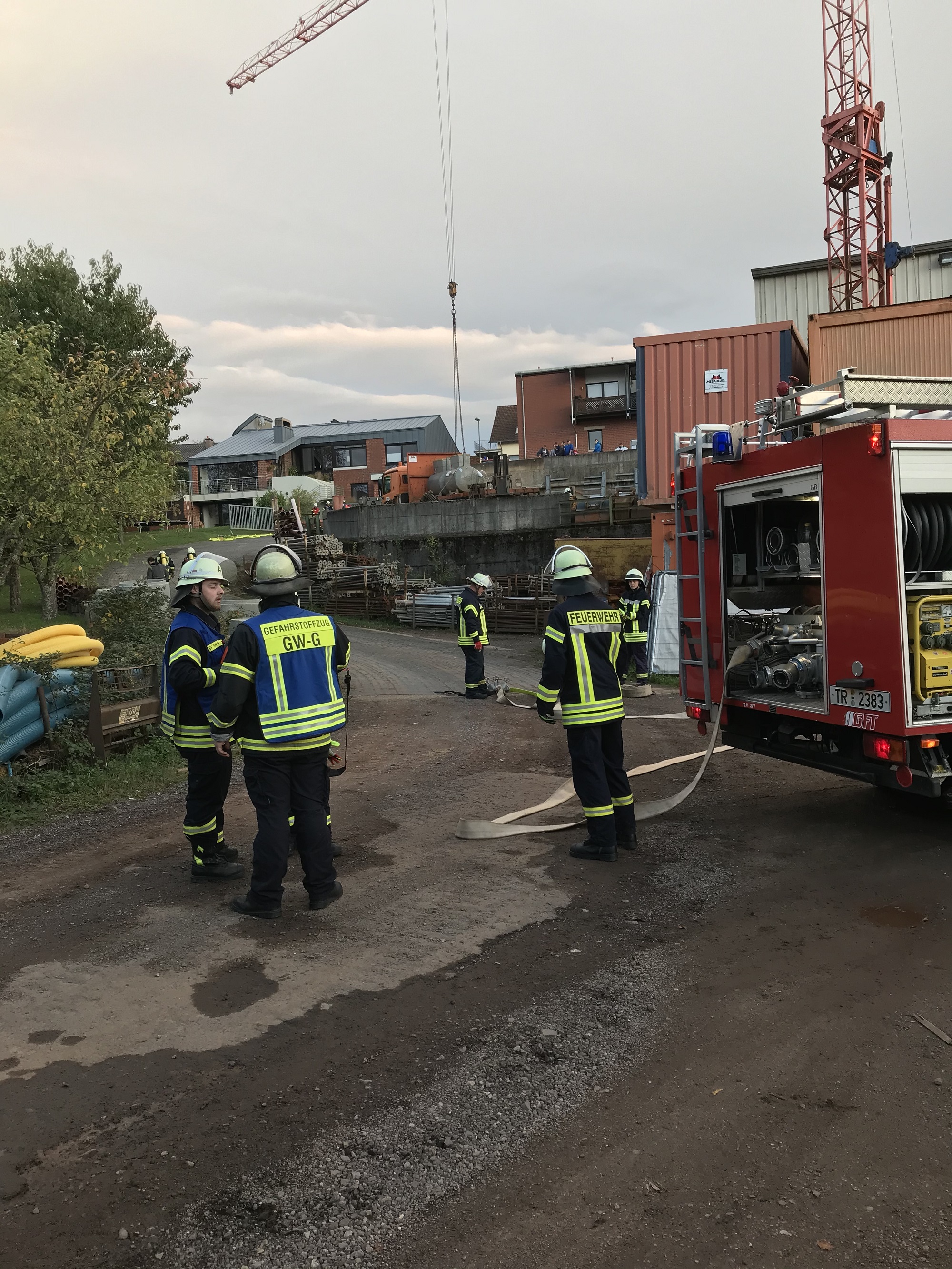 Übungszenario der Feuerwehr Freudenburg „Gefahrstoffunfall im Bauhof Firma Metrich, Freudenburg“