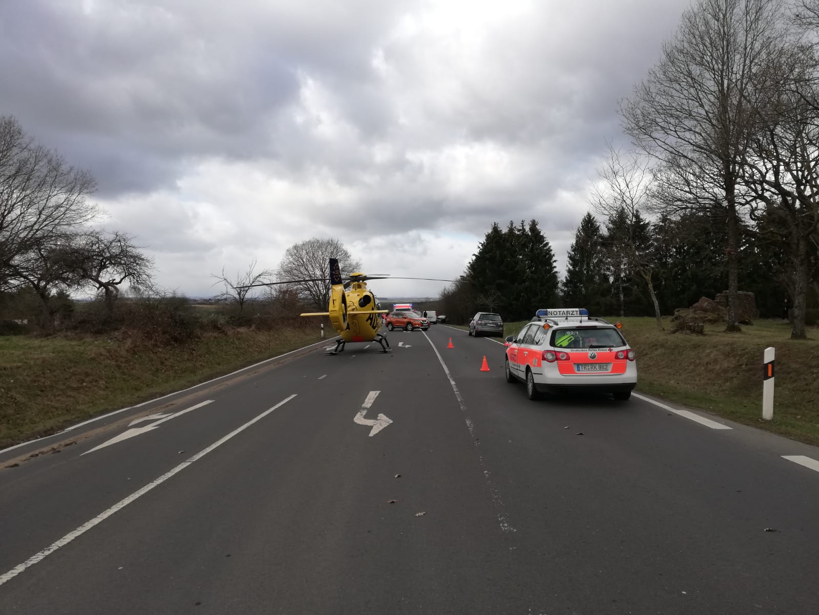 Vor Ort war die Polizei Bitburg, die Feuerwehr aus Speicher und Herforst, die Rettungswagen aus Speicher und Ehrang, der Rettungshubschrauber Christoph 10 und der Notarzt aus Ehrang.