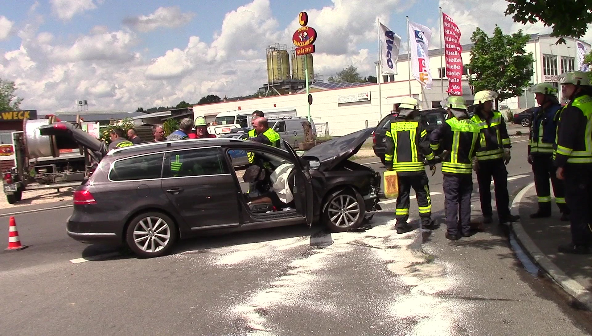 Wittlich. Am 30.05.2018, 11:43 Uhr, kam es am Einmündungsbereich Rudolf-Diesel-Straße / Otto-Hahn-Straße zu einer etwas heftigeren Kollision zwischen einem PKW VW Passat und einem Lastkraftwagen.