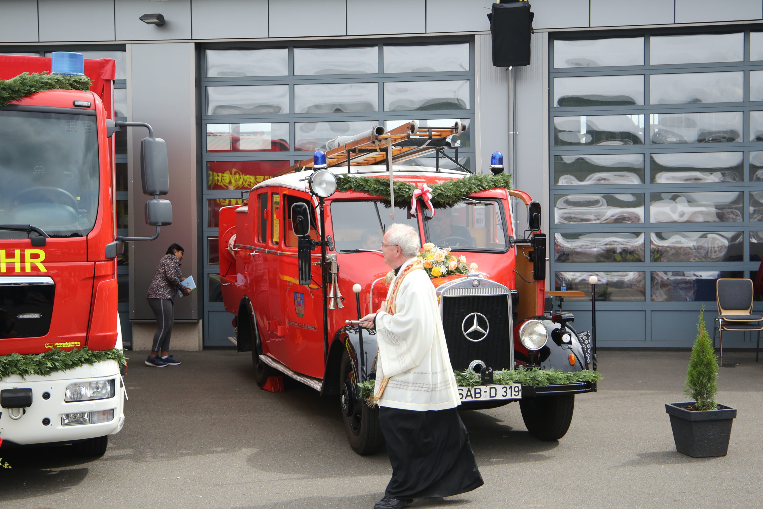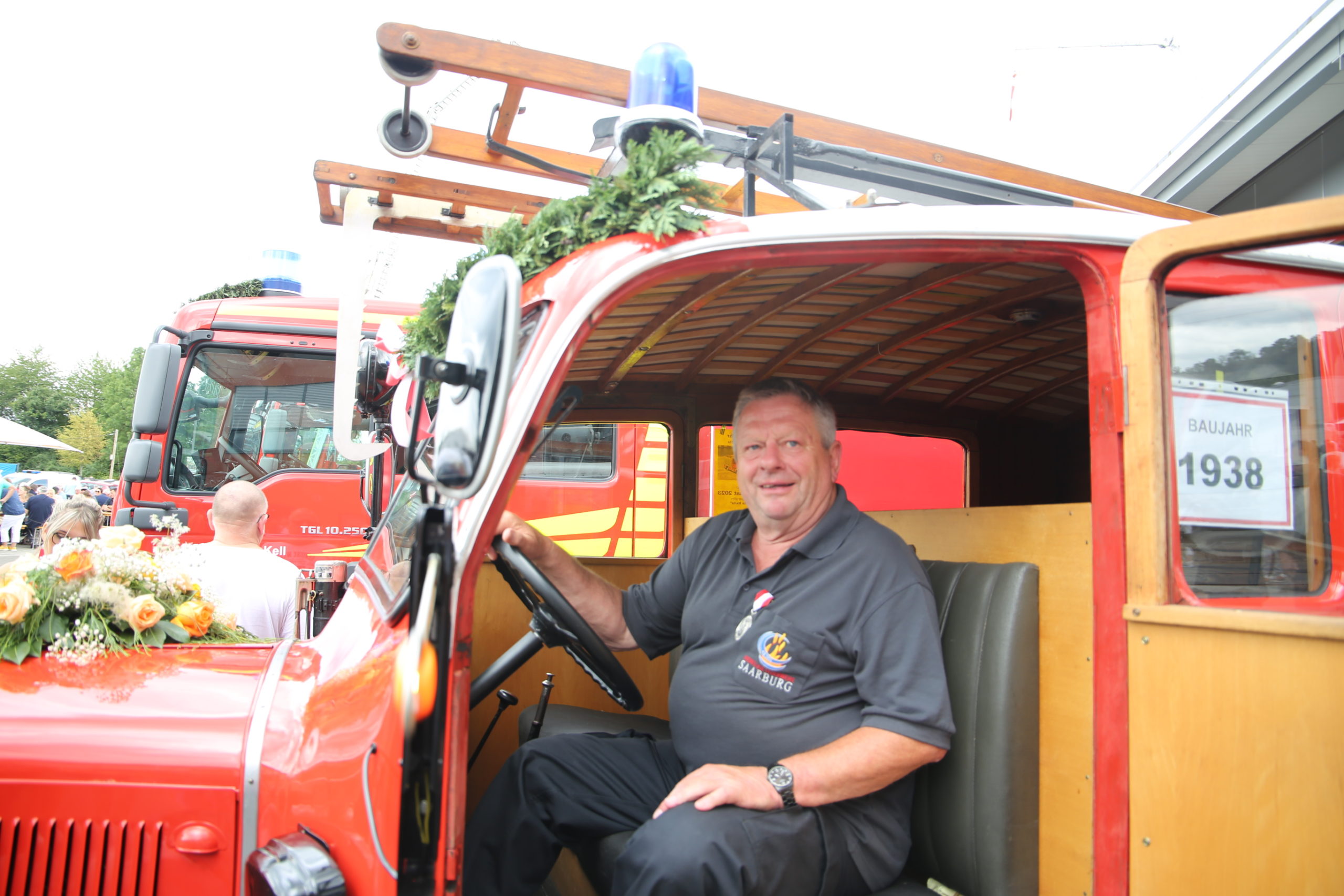 Besondere Aufmerksamkeit galt der 85 Jahren alten „Santa Maria“. Das LF 8 aus dem Jahre 1938 ist der ganze Stolz der Feuerwehr Saarburg und das älteste noch im Dienst befindliche Feuerwehrfahrzeug Deutschlands. Gäbe es nicht Martin Esser (langjähriges Mitglied in der Feuerwehr Saarburg.Heute in der Alterswehr pflegt und repariert er seine Santa Maria.