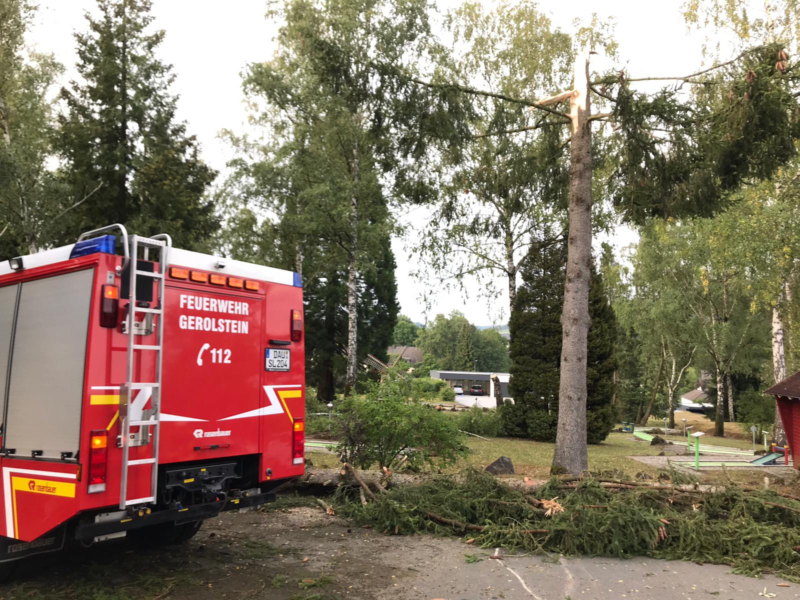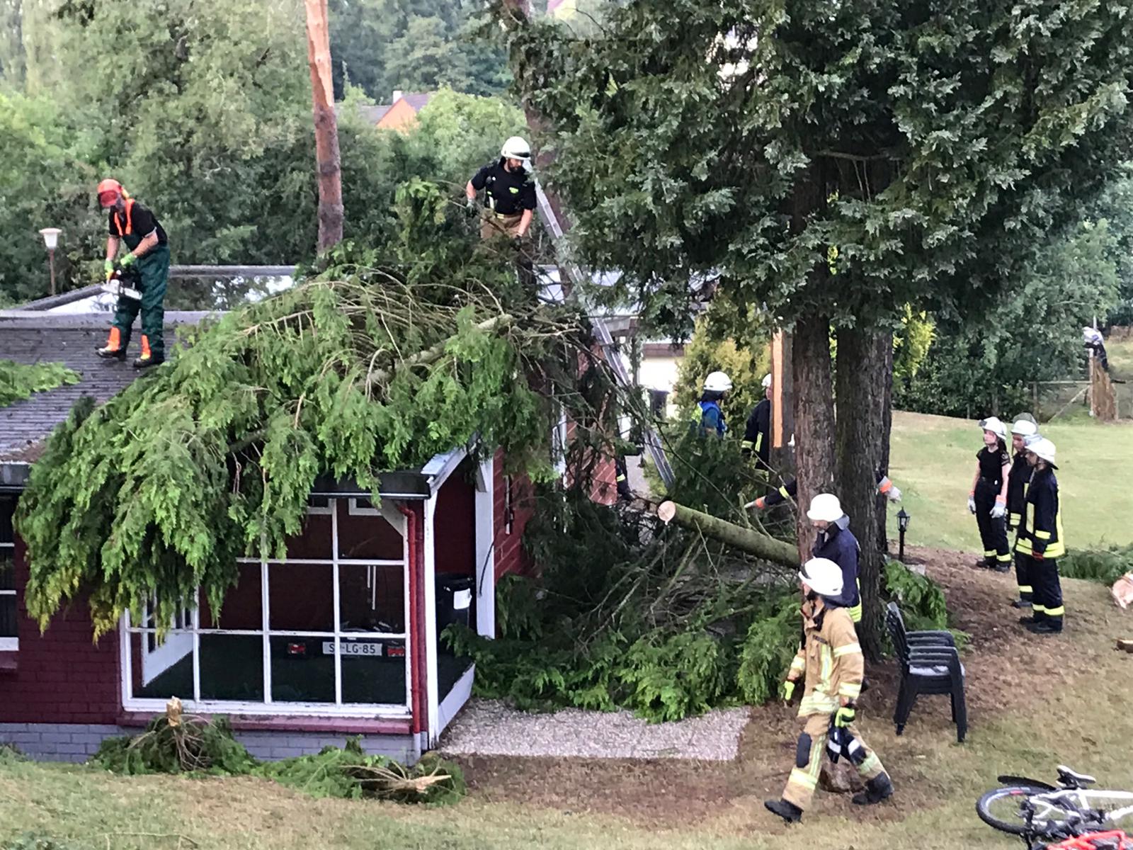 Gerolstein. Am Freitagabend sorgten Unwetter mit Starkregen für mehrere Einsätze in Gerolstein. Das Dach einer Lagerhalle wurde abgedeckt, auch in einem Ferienpark kam es zu Schäden an mehreren Dächern und Bäumen.