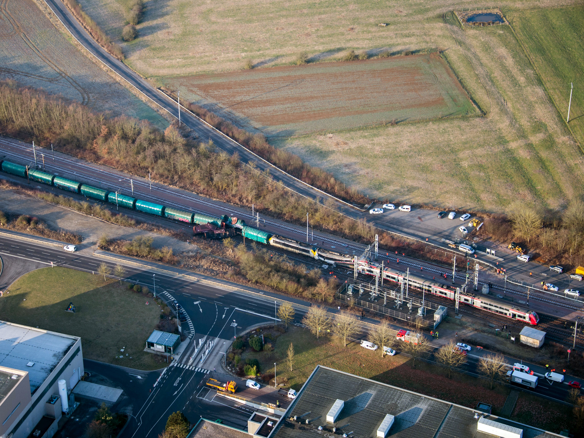 - Kurz vor 9 Uhr sind heute Morgen ein aus Frankreich kommender Güterzug und ein in Richtung Frankreich fahrender Personenzug aus Luxemburg zwischen dem Stellwerk Bettembourg und Zoufftgen zusammengestossen. Provisorischer Stand 10.00 Uhr: 2 Personen wurden leicht verletzt. 2 schwer verletzte Personen sind zu diesem Zeitpunkt noch eingeklemmt. Die Bilanz ist noch nicht definitiv. Vor Ort wurde ein „Poste médical avancé“ eingerichtet. Auf Anordnung der Staatsanwaltschaft wurde die Spurensicherung der Polizei mit einer Untersuchung beauftragt. Eine Hundestaffel (Groupe cynotechnique) ist ebenfalls vor Ort.