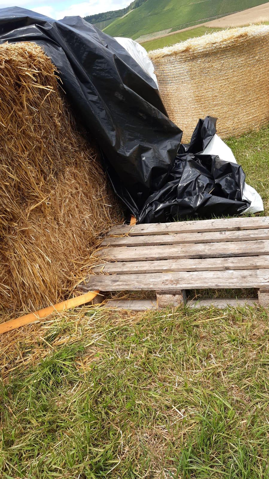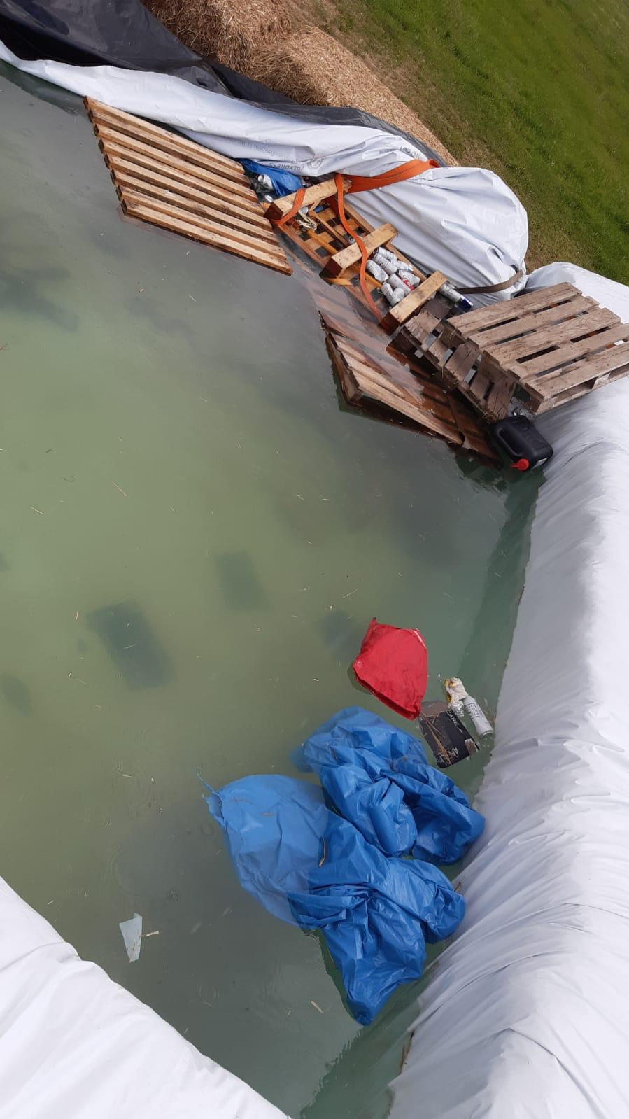 Im Zeitraum von vergangener Freitagnacht 1.00 Uhr bis heute morgen 4.00 Uhr stellte ein Jagdpächter die Verwüstung und Sachbeschädigung fest. Die Spanngurte wurden gelöst, beschädigt und teils mit einem Feuerzeug angezündet. Restmüll, Abfalltüten, Paletten,Spanngurte und Freizeitstühle landeten im Pool. Teils wurde die Folie zerschnitten.