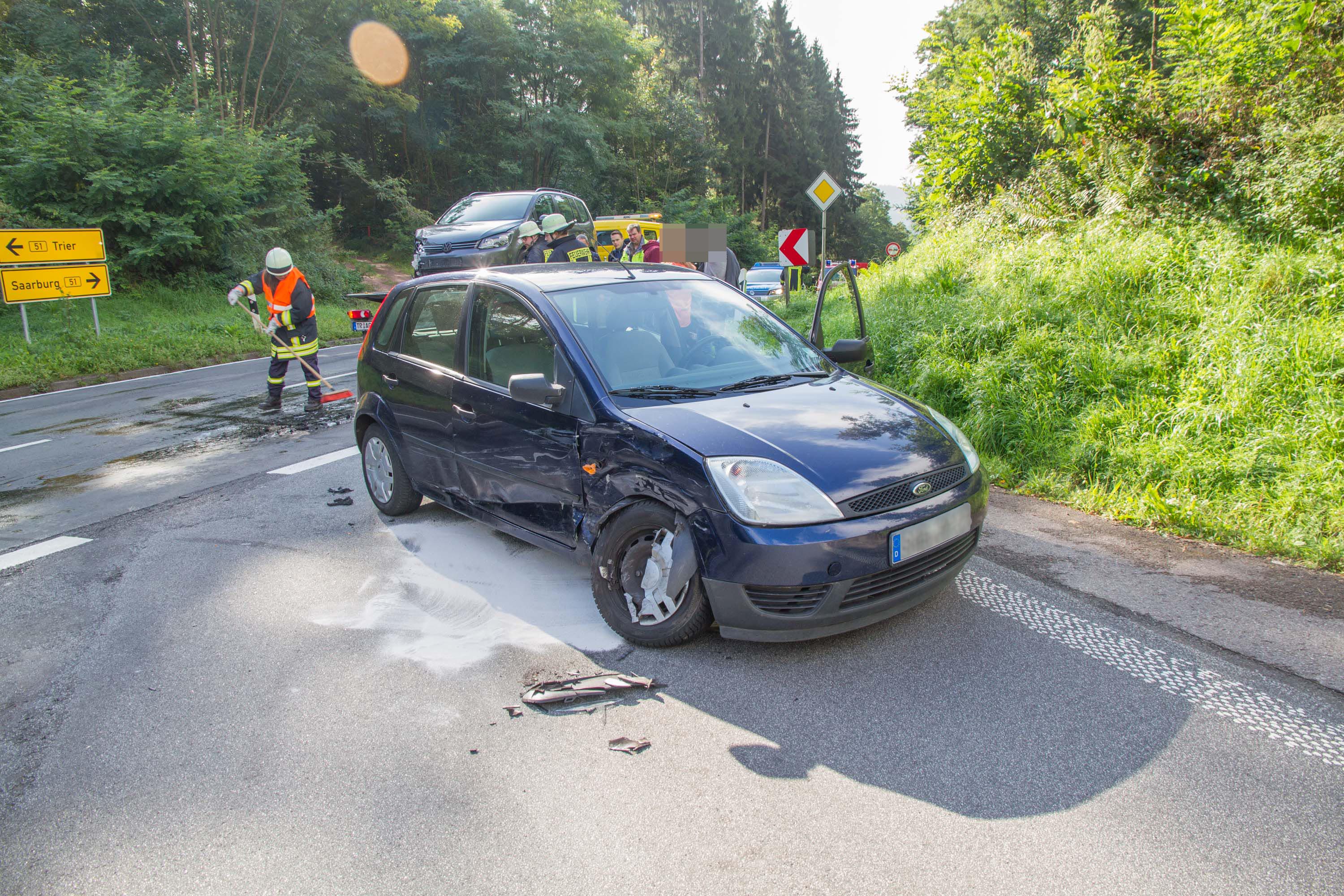 Tawern/B51. Am Sonntagmorgen gegen 9.45 Uhr kam es auf der B51 bei Tawern zu einem Verkehrsunfall. Eine 25- jährige Fahrzeugführerin aus dem Raum Saarburg wollte die Bundestraße 51 von Saarburg kommend in Richtung Tawern verlassen, dabei missachtete sie die Vorfahrt eines aus Konz kommenden, mit vier Personen besetzten, VWs. Die Unfallverursacherin erlitt leichte Verletzungen und wurde in ein Krankenhaus eingeliefert.