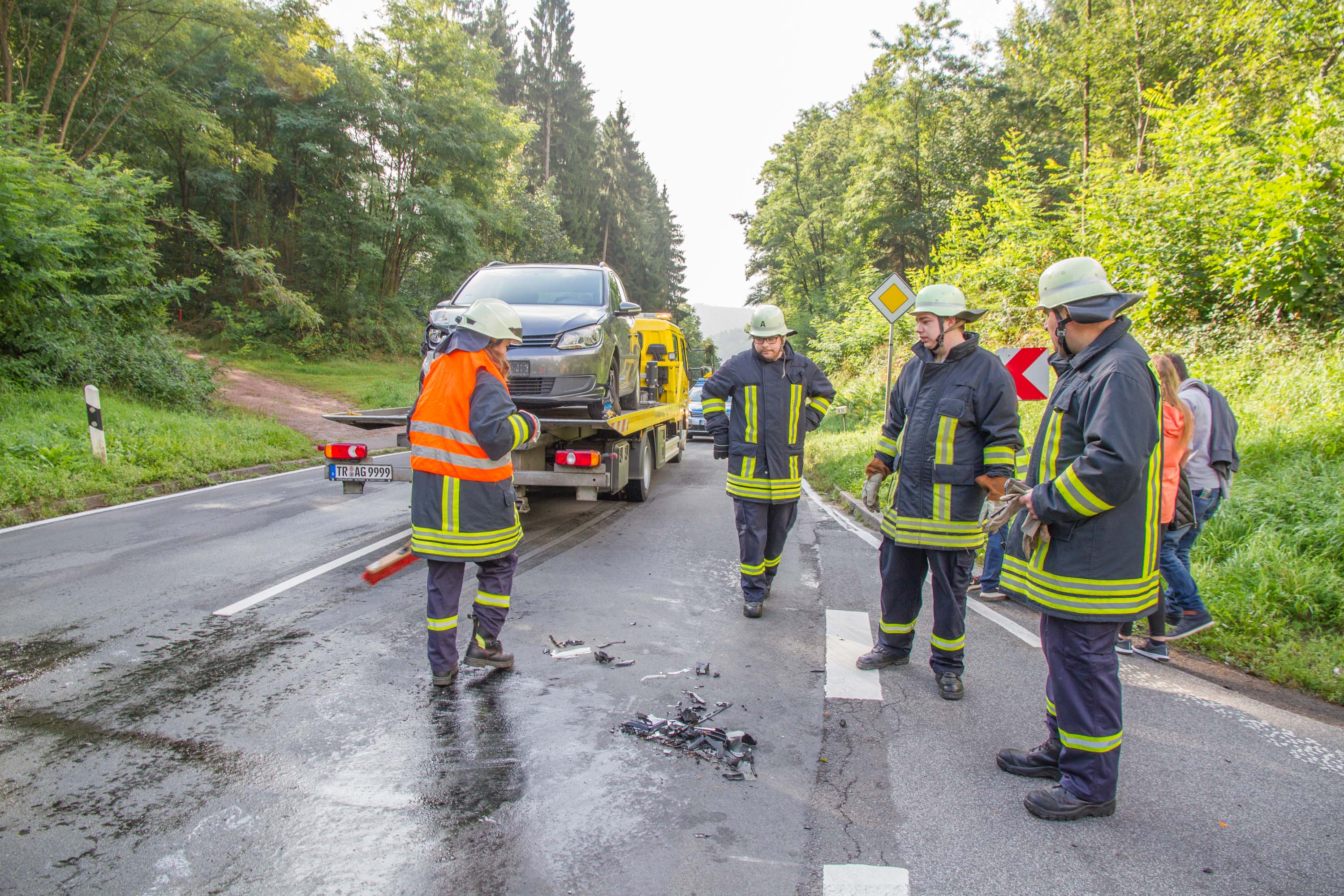 Die vier Insassen des Volkswagens aus dem Raum Wittlich kamen mit einem Schock davon. Die Strecke musste für rund 45 min voll gesperrt werden, da die Feuerwehr auslaufende Betriebsstoffe binden musste. Der Sachschaden beläuft sich auf rund 7.000 €.
