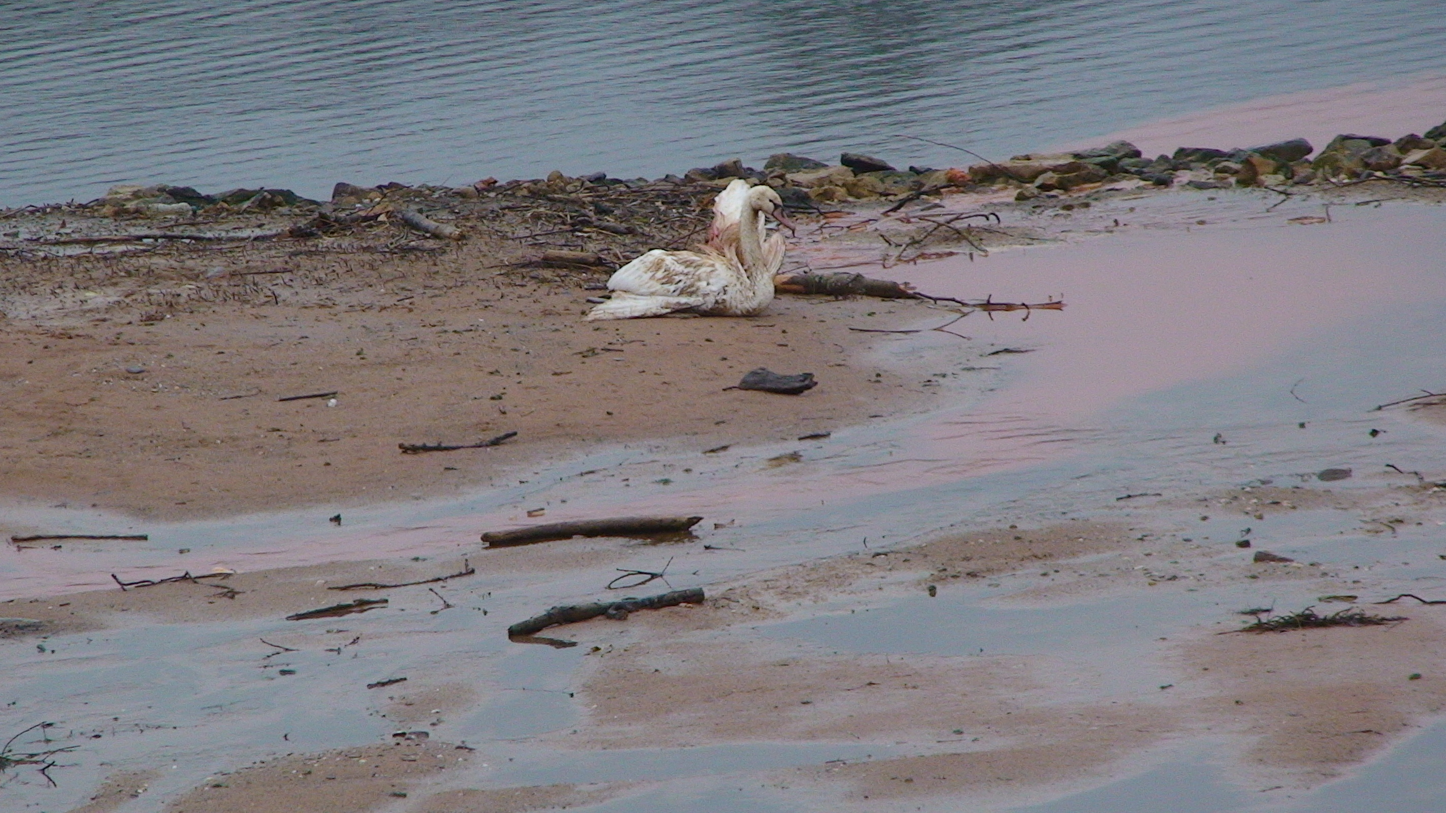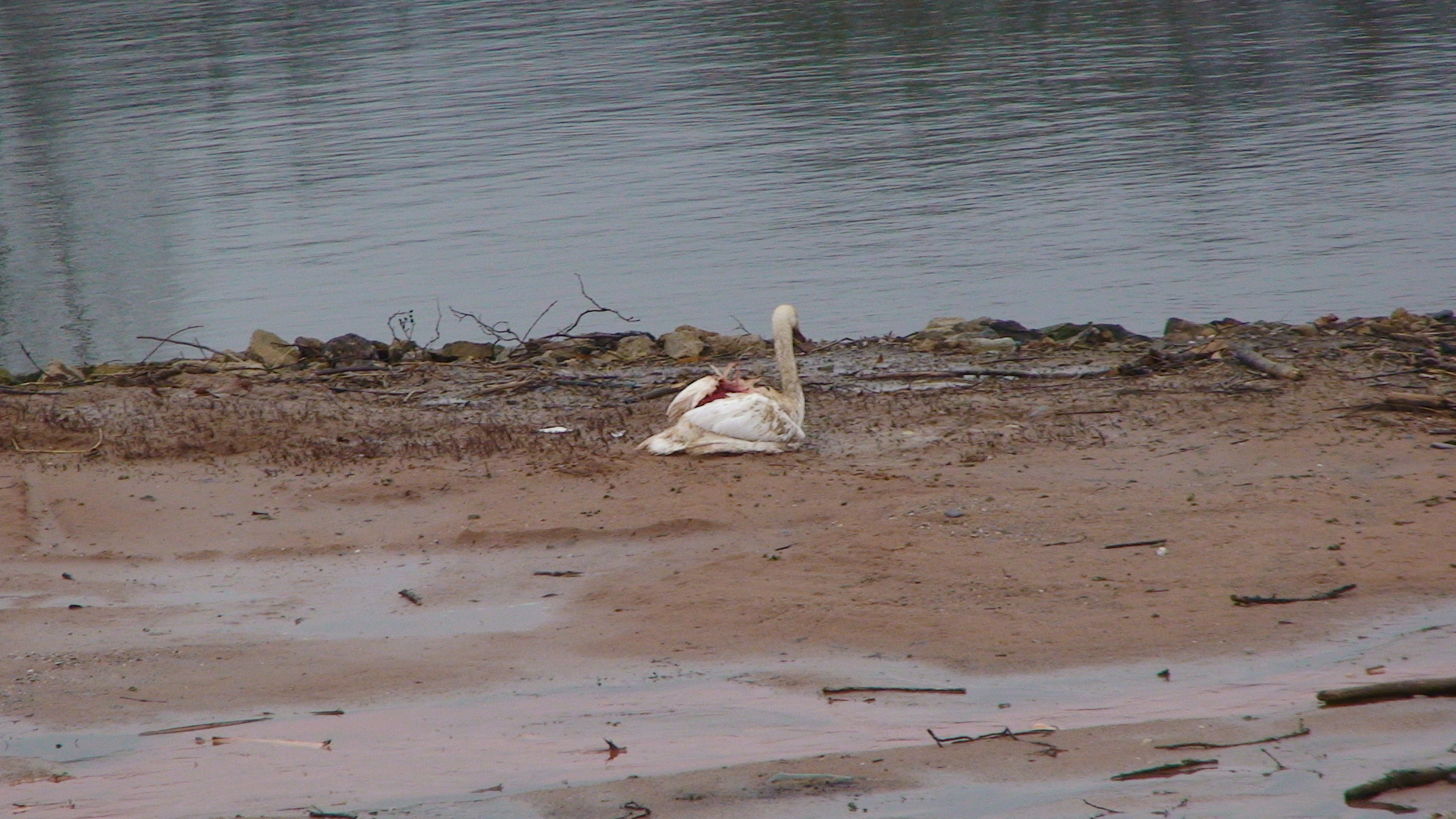 Wie es sich vor Ort darstellte, lebte der Schwan noch. Er war aber so schwer verletzt, das seitens des Veterinäramtes ein Tierarzt zur Begutachtung an die Einsatzstelle kam und das Tier einschläfern musste. Woher die Verletzungen stammen konnte letztendlich nicht geklärt werden.