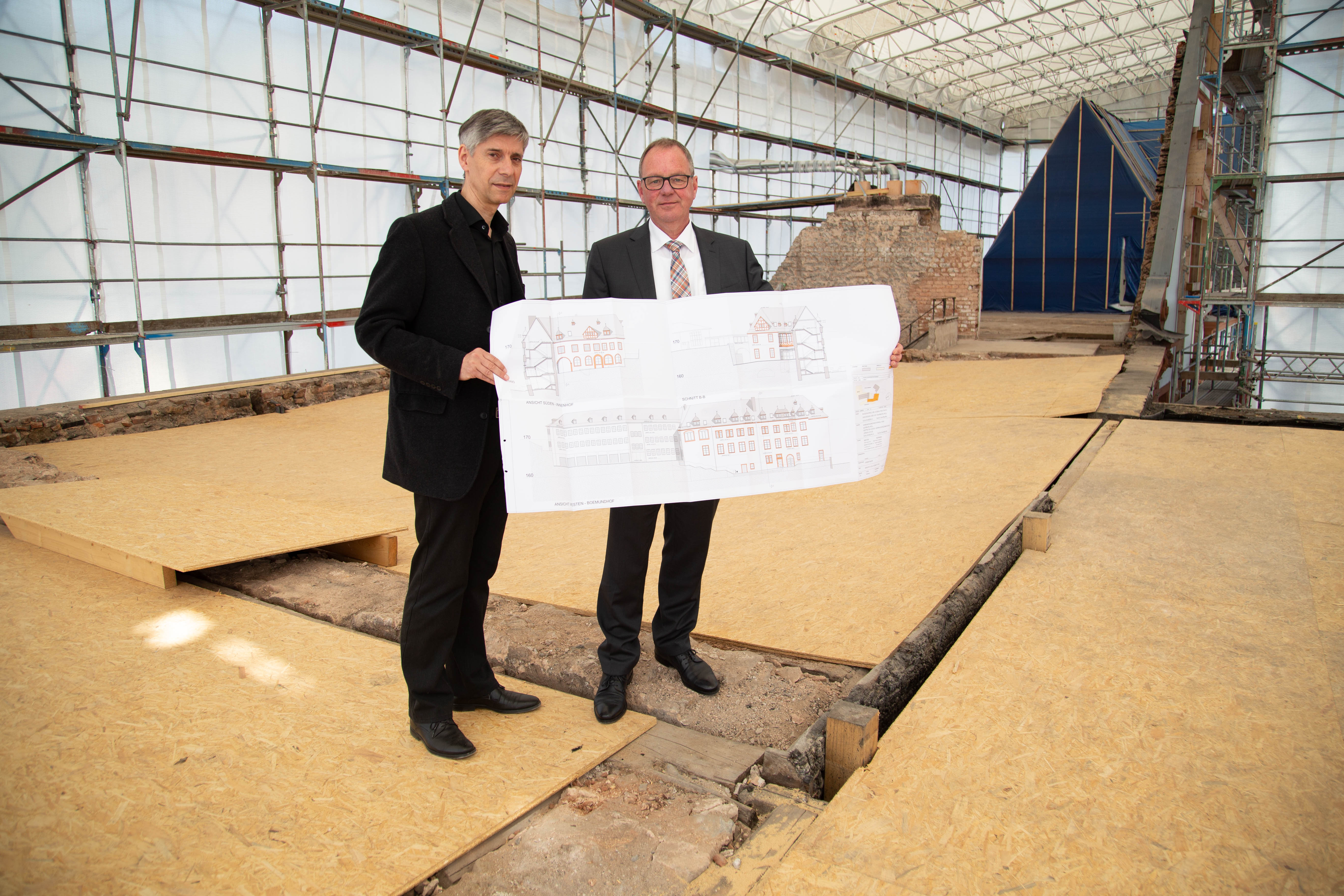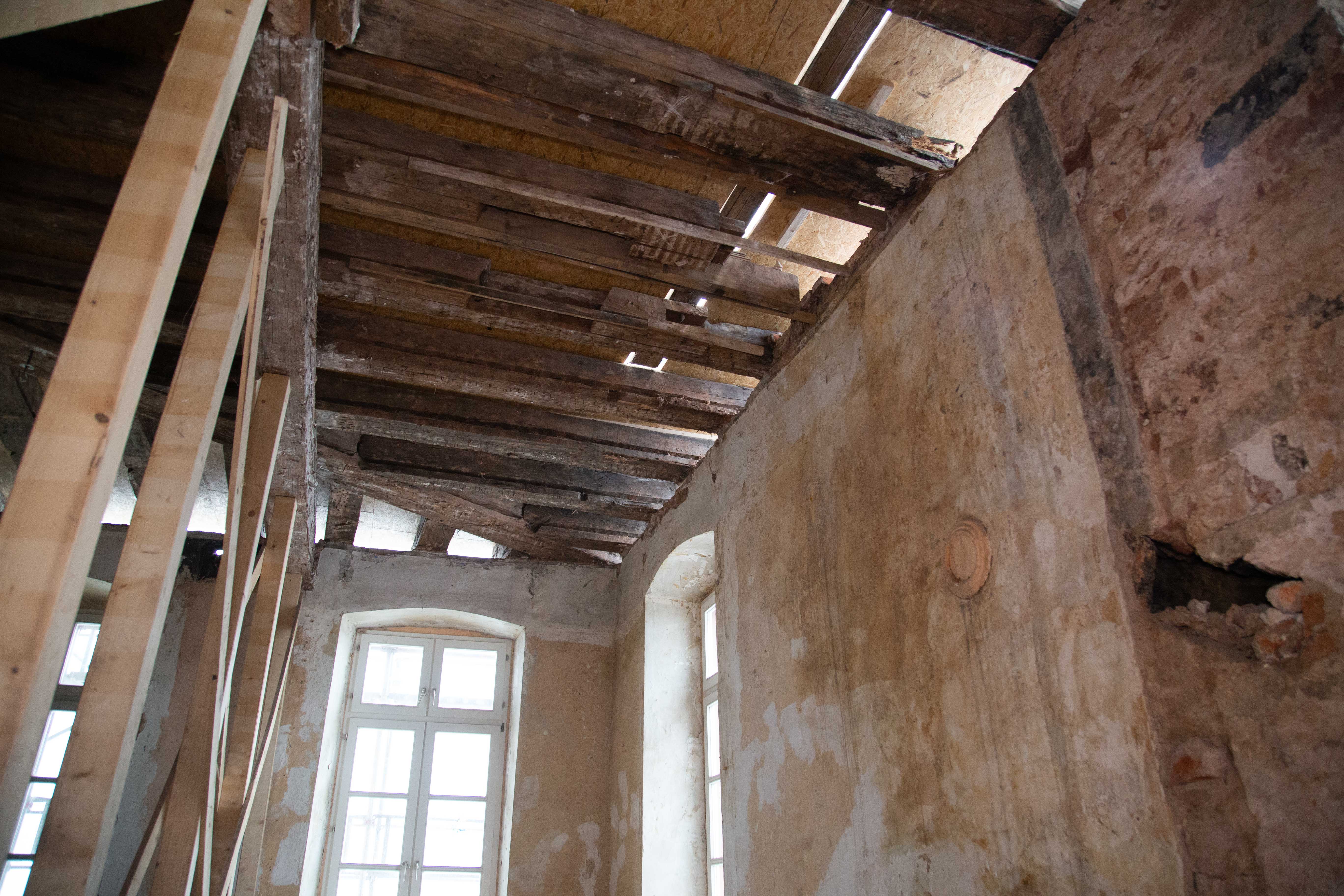 Bei den nun anstehenden Wiederaufbauarbeiten steht die Erhaltung möglichst vieler historischer Bausubstanz im Vordergrund , da es sich um ein historisches Denkmal handelt . „Besondere Schwierigkeiten hierbei sind neben der Rücktrocknung des Gebäudes , die Holzbalken , welche von 1725 stammen und größtenteils zur Denkmalpflege erhalten werden müssen“, so Architekt Thomas Henter.