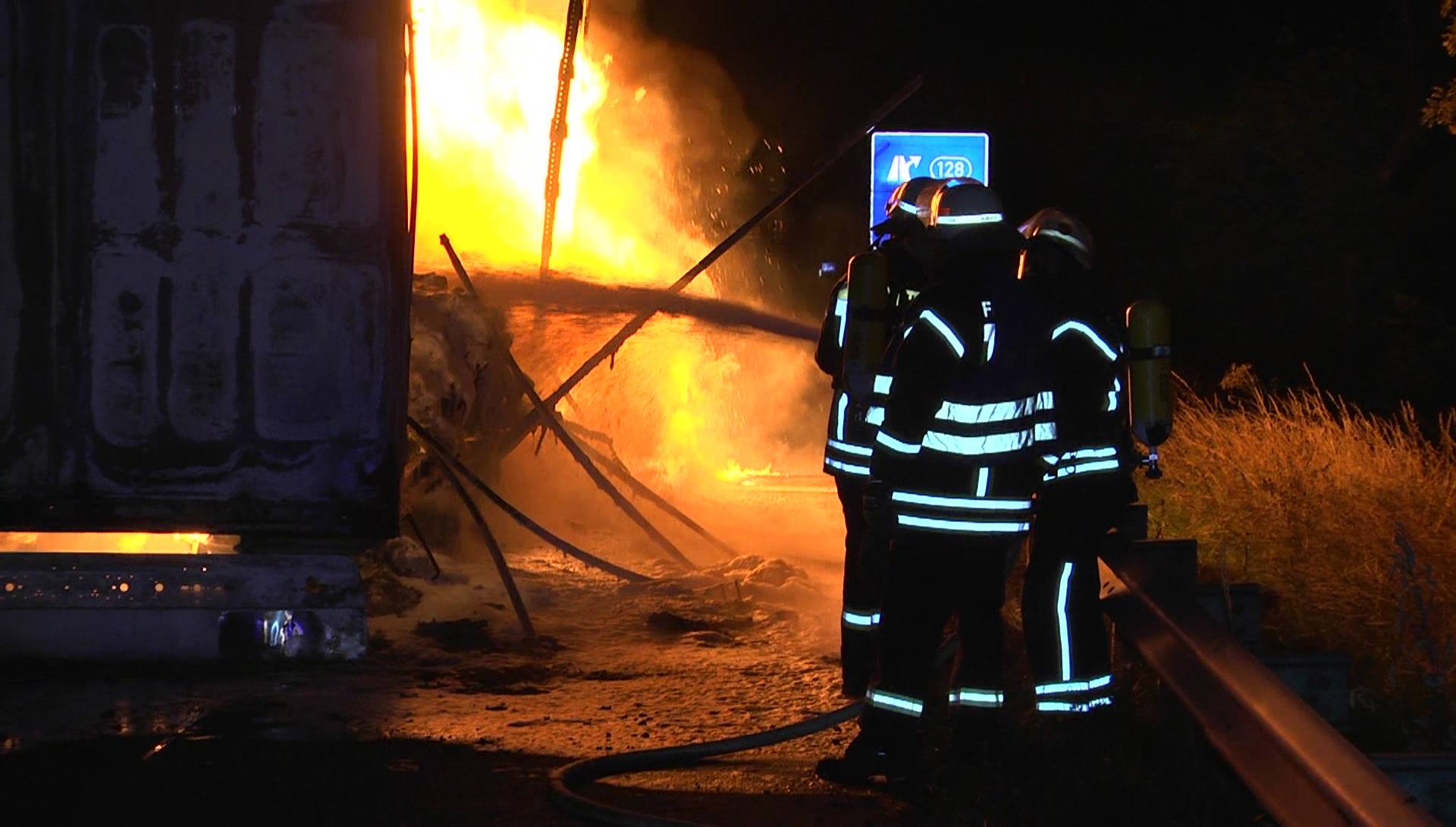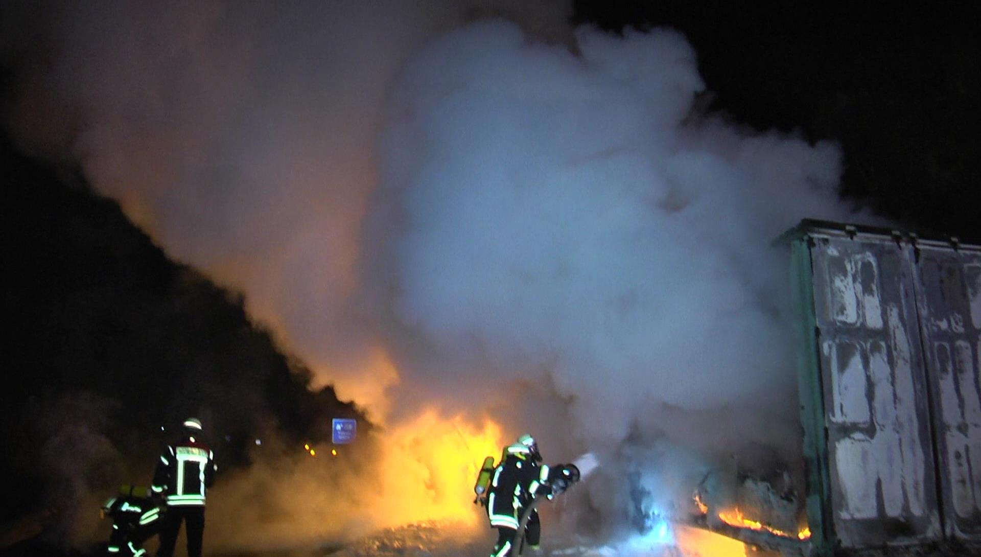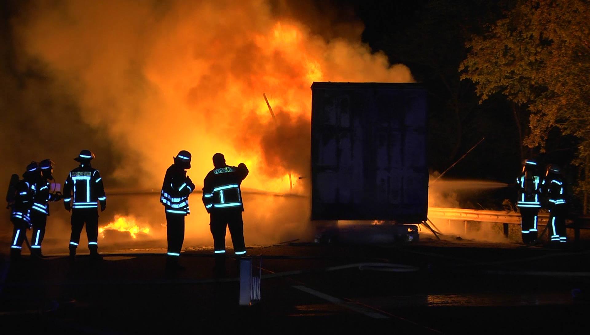 Vollbrand eines Sattelaufliegers auf der A1 bei Hetzerath