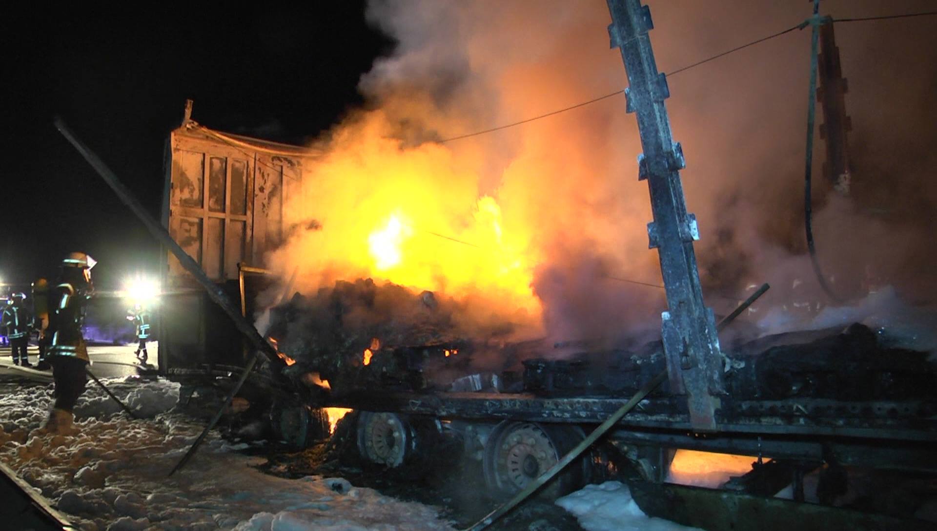 Schweich/Hetzerath.    Am Montag, den 25.06.2018, gegen 02:10 Uhr, geriet auf der A 1, kurz hinter dem Parkplatz Hetzerath in Fahrtrichtung Trier, der Sattelanhänger eines litauischen Sattelzuges in Brand. Der 32 jährige Fahrer konnte die Sattelzugmaschine noch rechtzeitig abkuppeln, bevor der Anhänger in Vollbrand geriet. Der Sattelanhänger war mit 6 Tonnen Plastikrollen beladen.