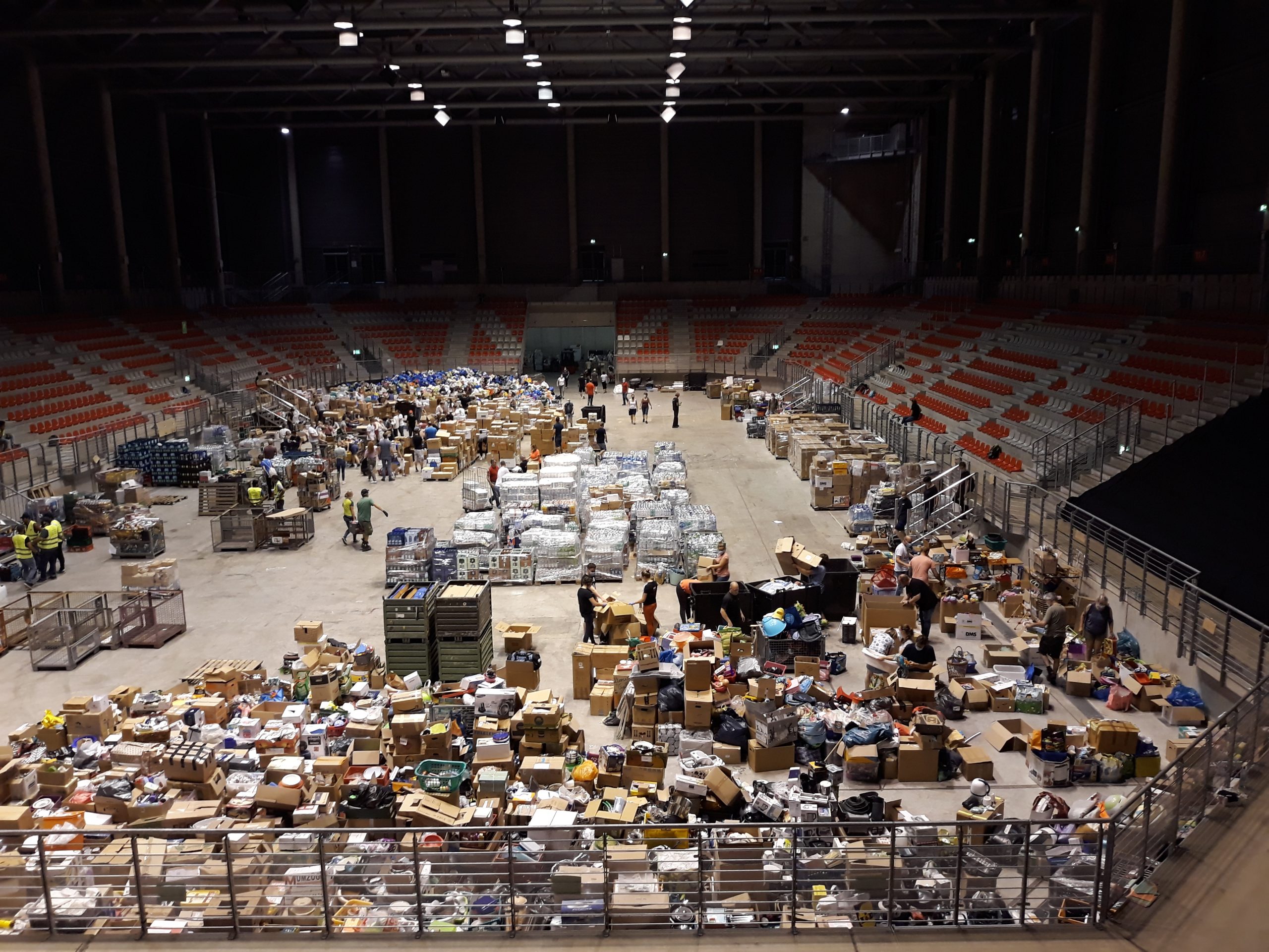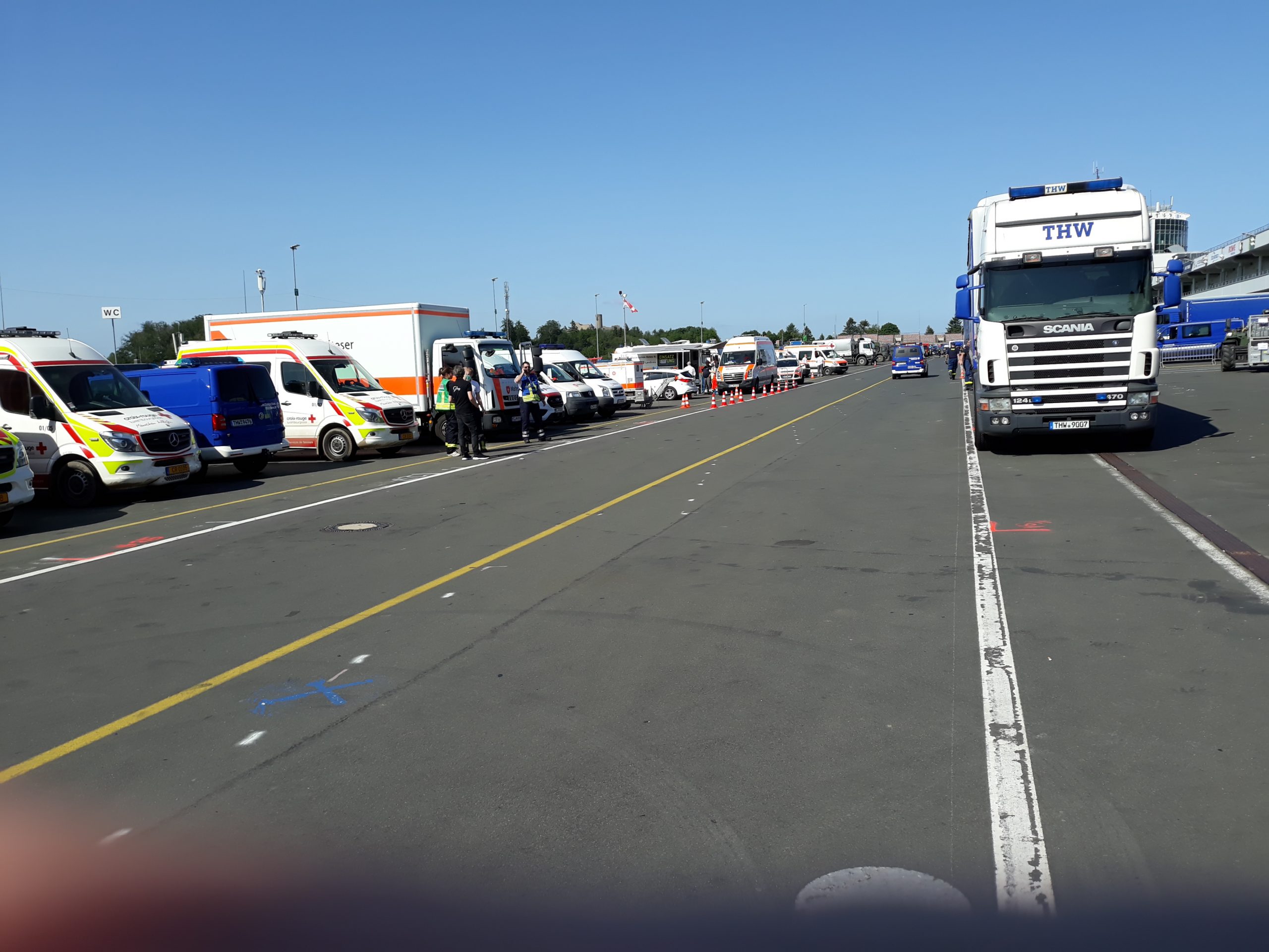 Adenau/Nürburgring. Unser Team von SMN war gestern zur Pressekonferenz von Bundeskanzlerin Angela Merkel und Ministerpräsidentin Malu Dreyer im Auftrag einer TV Produktion in Adenau und auf dem Nürburgring. Die Spendenbereitschaft von Sachspenden sind so groß, das circa drei Fußballfelder in den Hallen des Nürburgring voll sind. Die Menschen brachten Hygieneartikel, Kleidung,Kinderwagen und vieles mehr. Es ist schon beeindruckend was hier geleistet wird. Auch auf dem sogenannten Bereitstellungsraum (großer Parklatz am Fahrerlager)s stehen hunderte Fahrzeuge der Hilfsorganisationen bereit. Von hier aus werden werden vorgehaltene Hilfsgeräte und Anlagen für die Rettungskräfte in den Katastrophengebieten koordiniert und per LKW und Hubschrauber in die betroffenen Gebiete im Ahrtal geflogen. Es werden aktuell keine Sachspenden mehr angenommen. Es werden aber immer noch freiwillige Helfer zur Vorsortierung und packen von Hilfspaketen gesucht.