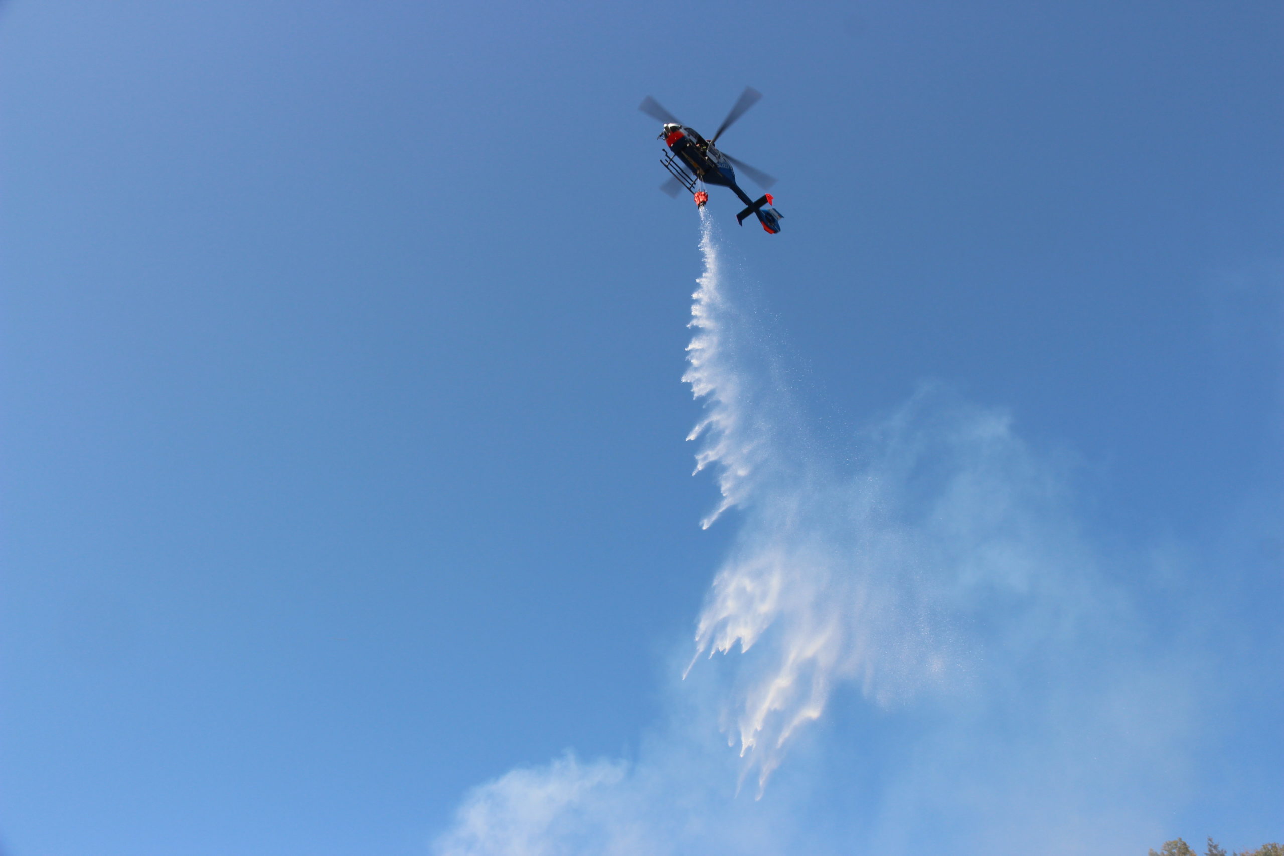 Ebenfalls im Einsatz befand sich ein Hubschrauber der Polizei, der mit einem Außenlastbehälter Wasser auf die unzugänglichen Stellen abwirft. Die Brandbekämpfung aus der Luft diente  jedoch nur zur Eindämmung des Feuers, ein vollständiges ablöschen konnte aber nur durch bodengebundene Kräfte erfolgen.