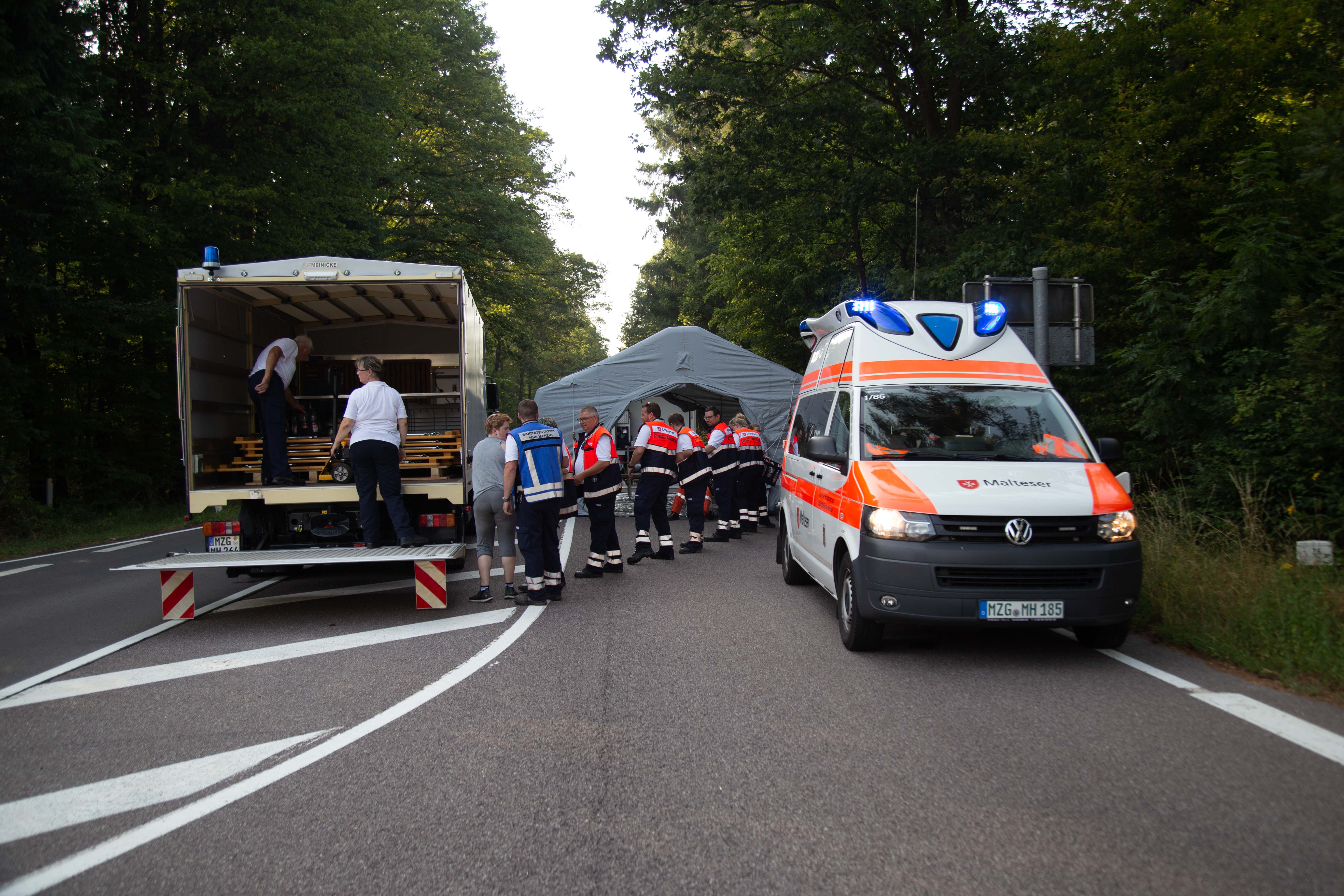 Der Malteser Hilfsdienst versorgte die Einsatzkräfte mit Getränken und Verpflegung. Auch ein Sanitätszelt wurde aufgebaut.