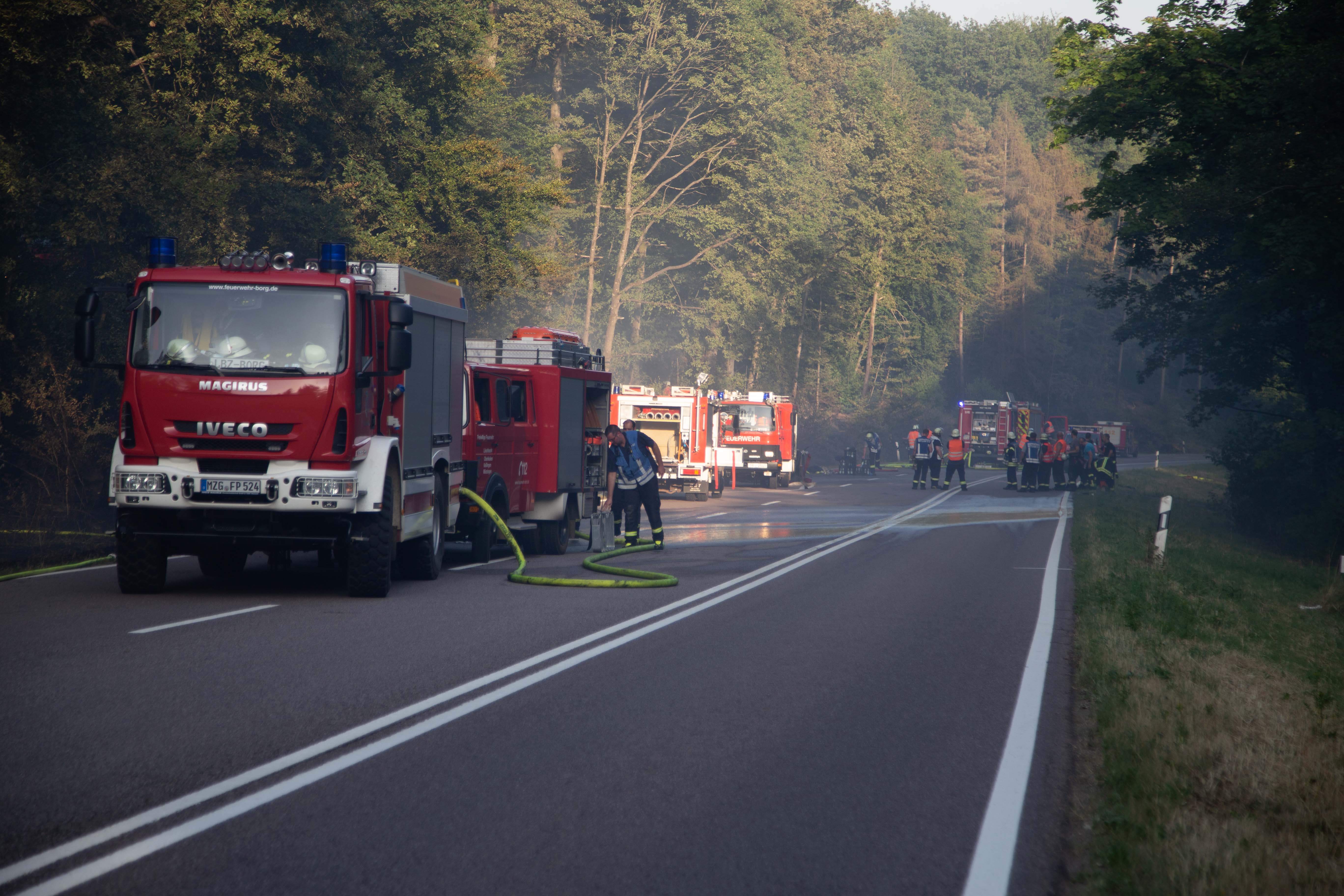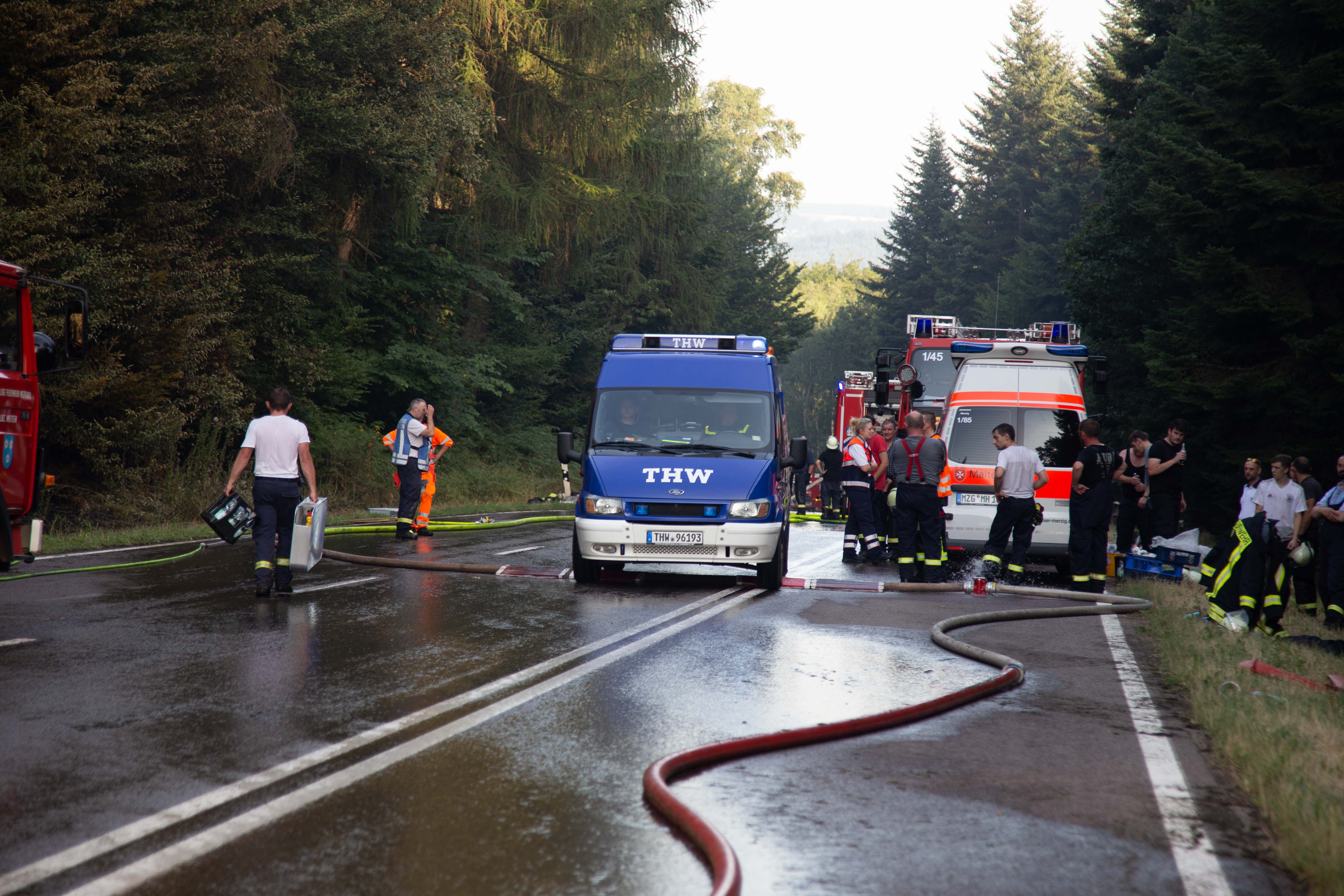 Die betroffene Strecke musste voll gesperrt werden. Den ganzen Abend sind Tankwagen im Pendelverkehr zwischen der Einsatzstelle und den Wasserentnahmestellen gefahren. Auch eine Drohne mit Wärmebildkamera der Feuerwehr aus Düppenweiler kam zum Einsatz.