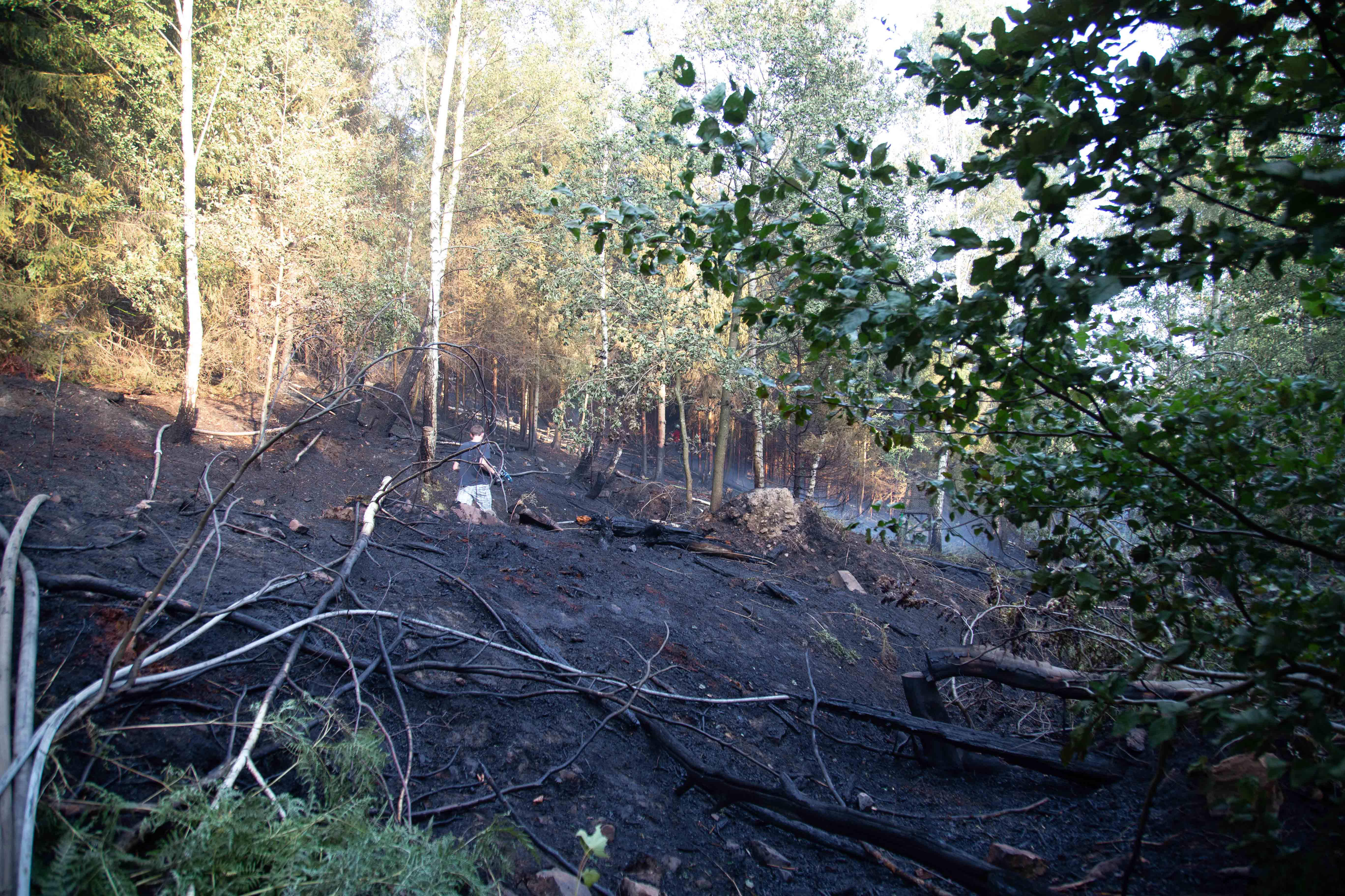 Das Feuer griff auf das innere Waldgebiet über, dort stand eine Fläche rund 2,5 Hektar in Flammen.