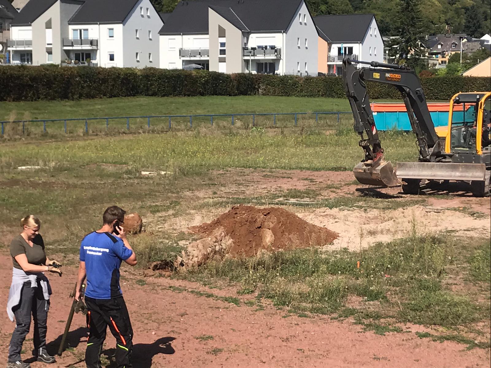 Trier. Bei Bauarbeiten in Trier-Euren ist heute um 12.35 Uhr eine Weltkriegsbombe gefunden worden. Nach ersten Erkenntnissen handelt es sich um eine 250 Kilogramm schwere britische Fliegerbombe des Typs MC 500 mit einem Aufschlagzünder. Nach Angaben des Kampfmittelräumdienstes Rheinland-Pfalz, der mit seinen Experten vor Ort ist, geht von der Bombe derzeit keine Gefahr aus. Die Bombe lag in 1,20 bis 1,30 Tiefe. Gefunden wurde die Bombe bei routinemäßigen Sondierungen im Zuge der Bauarbeiten für ein neues Kleinspielfeld bei der Bezirkssporthalle Trier-West. Der Sportplatz ist abgesperrt, dort laufen derzeit weitere Sondierungsarbeiten.