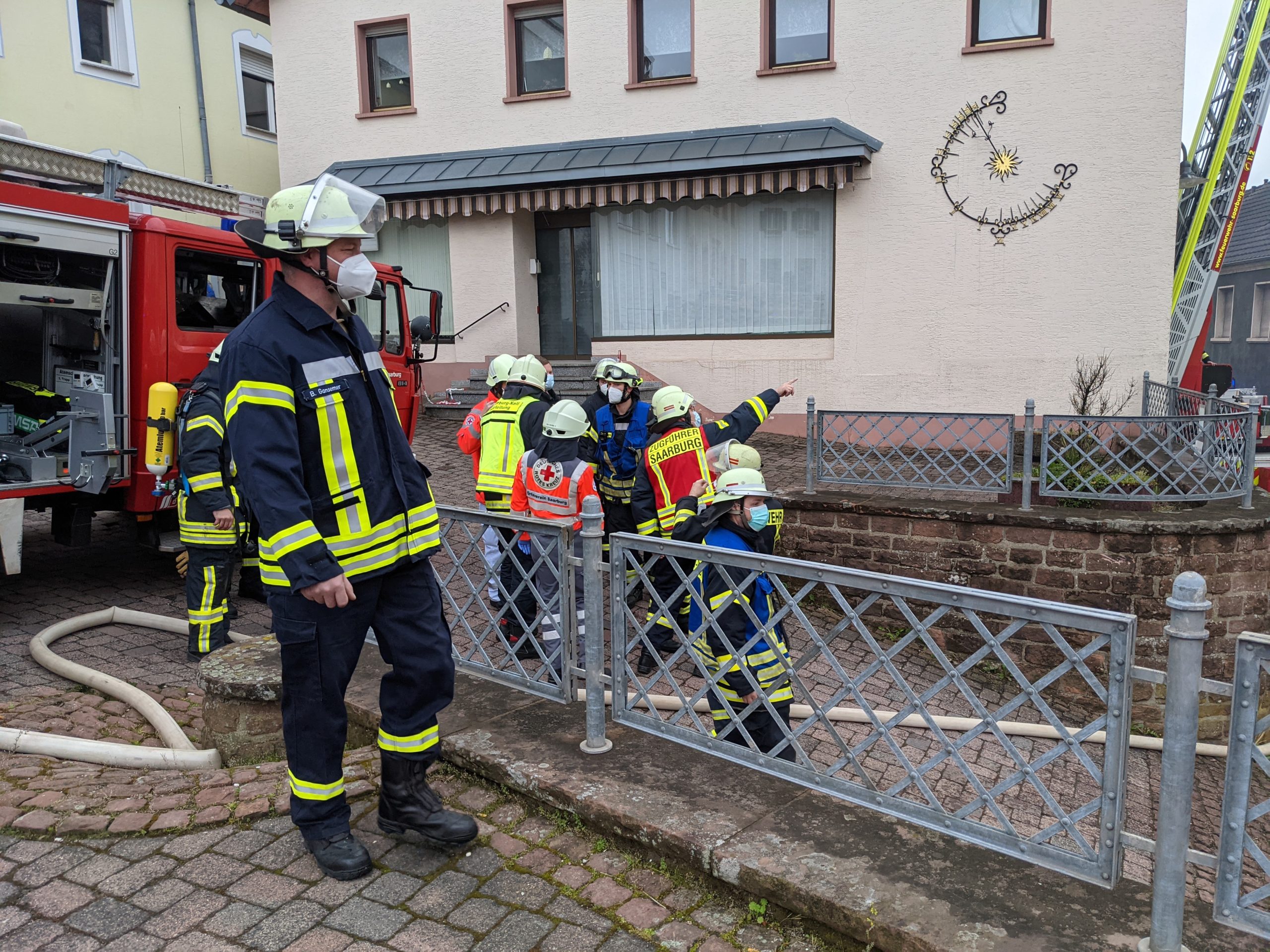 Auch der 1. Beigeordnete der VG Saarburg-Kell. Martin Alten, machte sich am Morgen ein Bild von der Lage. Er bedankte sich bei allen Einsatzkräften und wünschte der betroffenen Familie eine rasche Genesung.