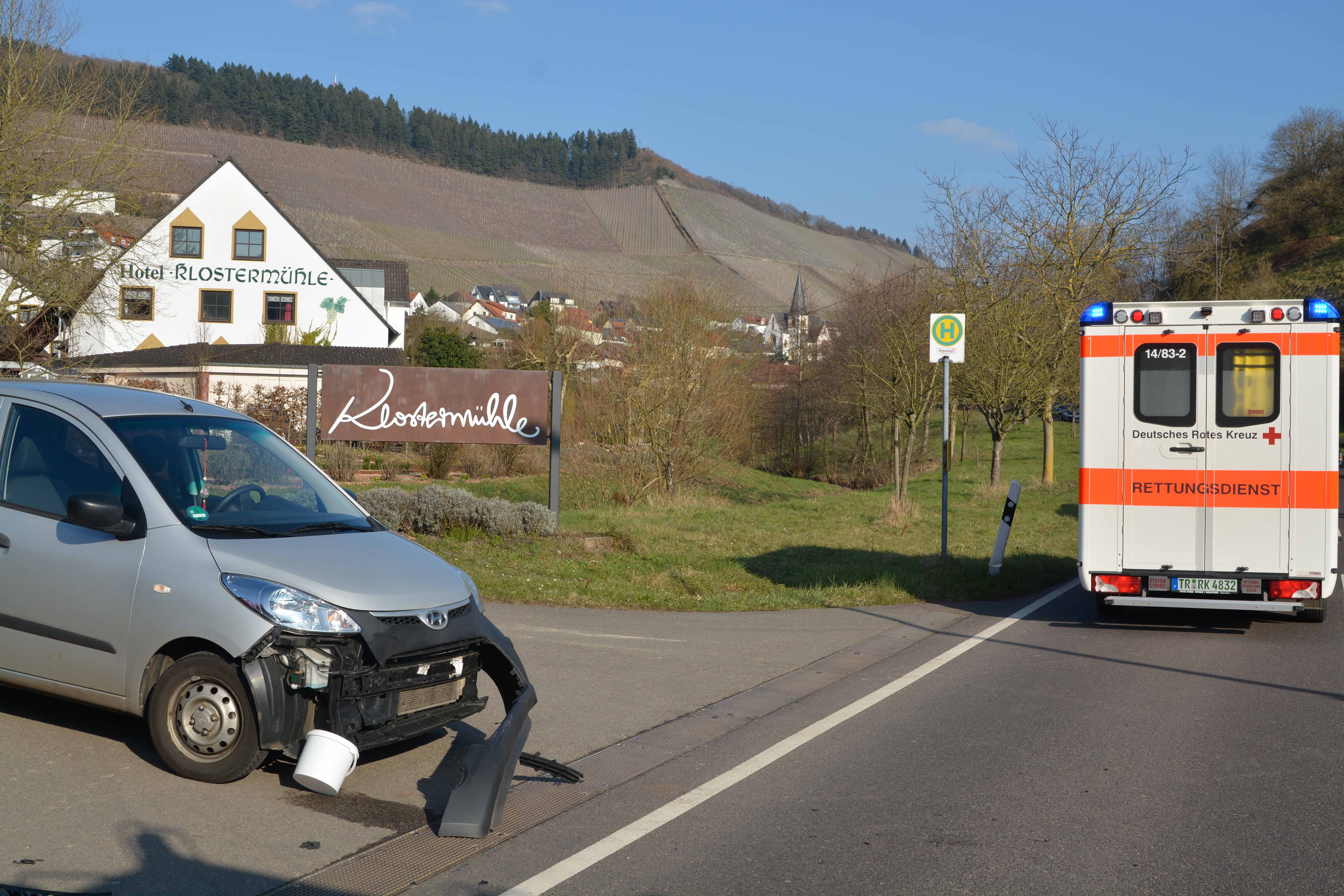 Eine allein im Fahrzeug befindliche 38-jährige PKW-Fahrerin, befuhr mit Ihrem Hyundai die Parkplatzzufahrt der Klostermühle in Ockfen um nach links in die Hauptstraße einzubiegen.