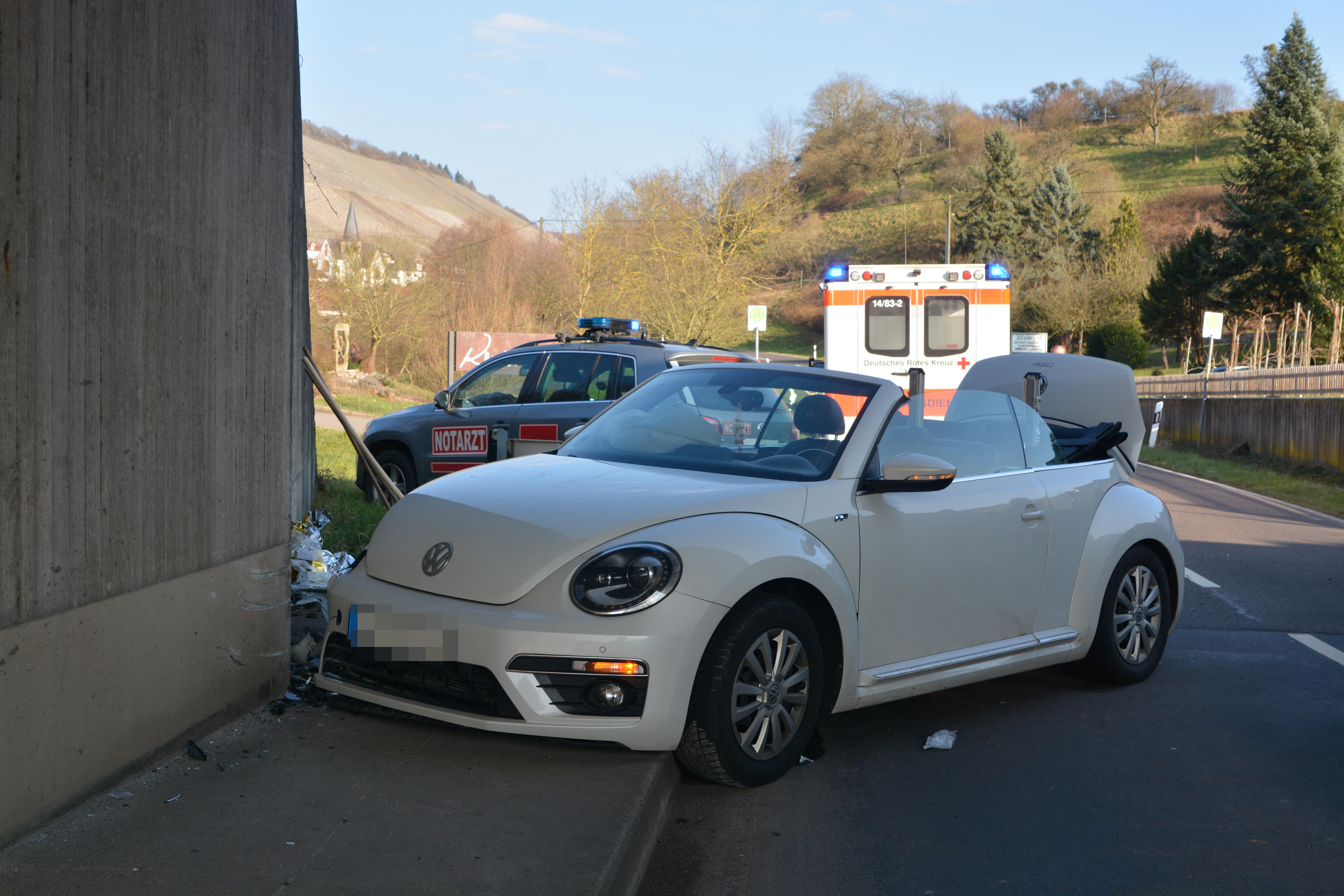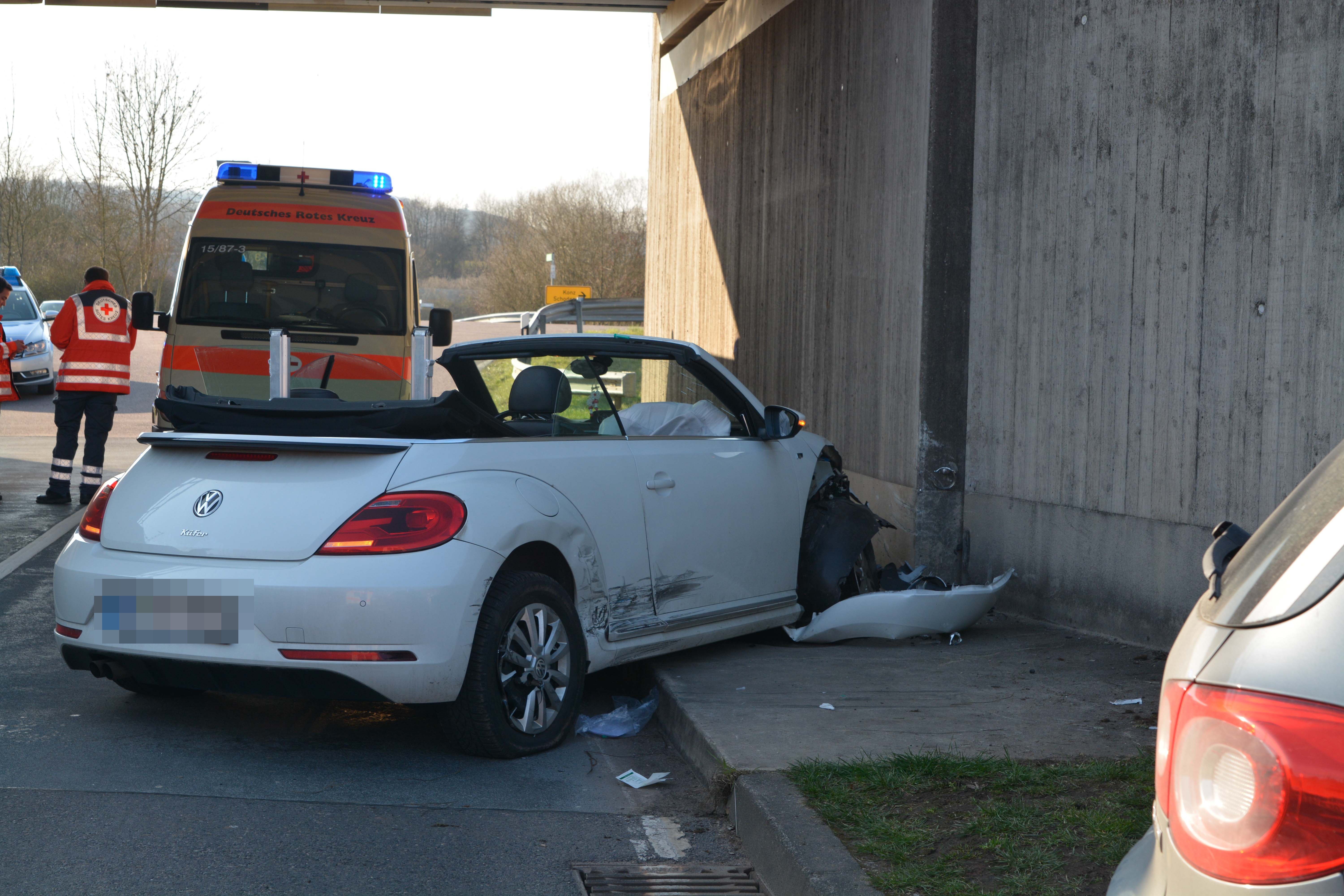 An beiden Fahrzeugen entstand erheblicher Sachschaden. Der VW Beatle musste abgeschleppt werden. Der Sachschaden an dem DB Brückenpfeiler war gering.