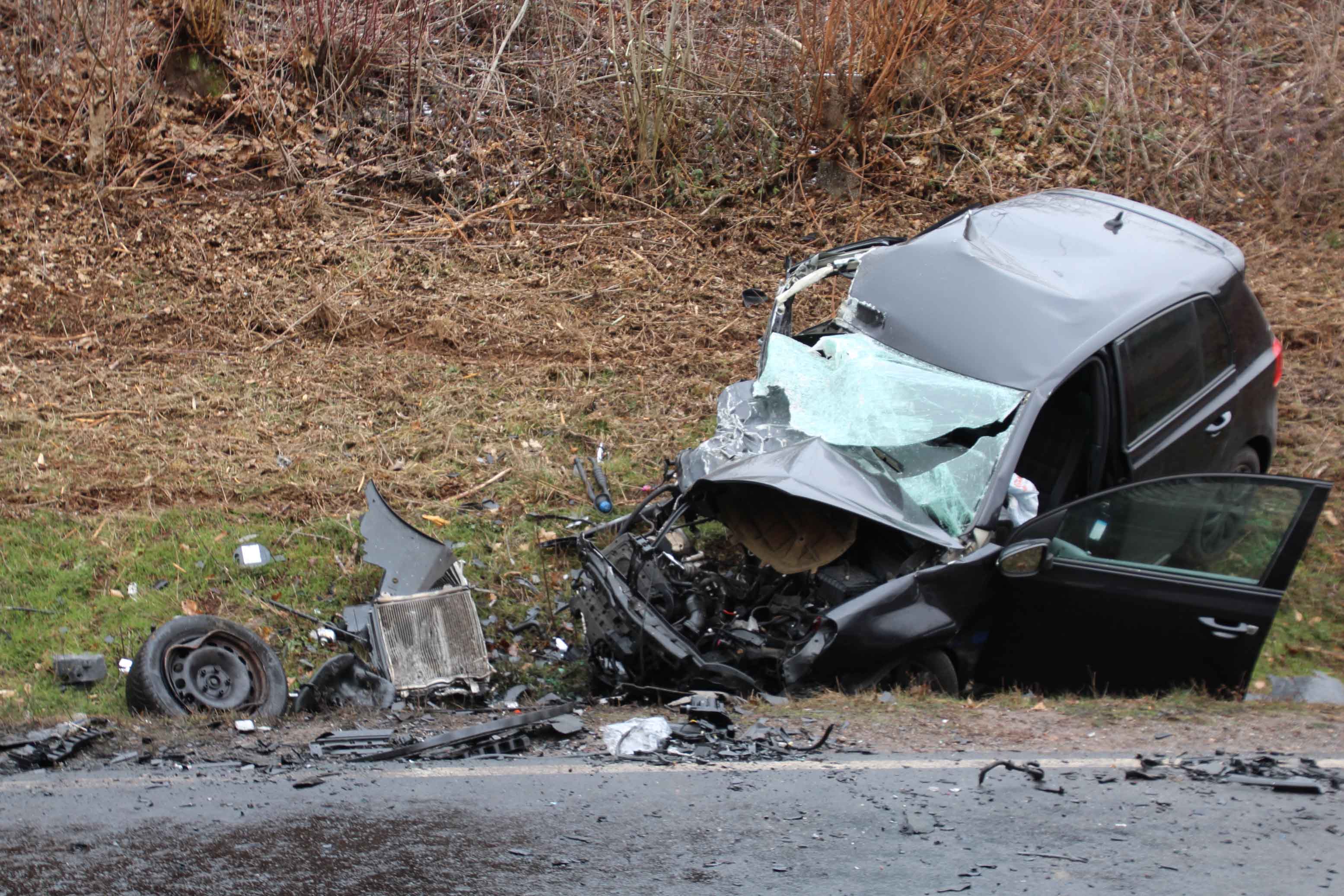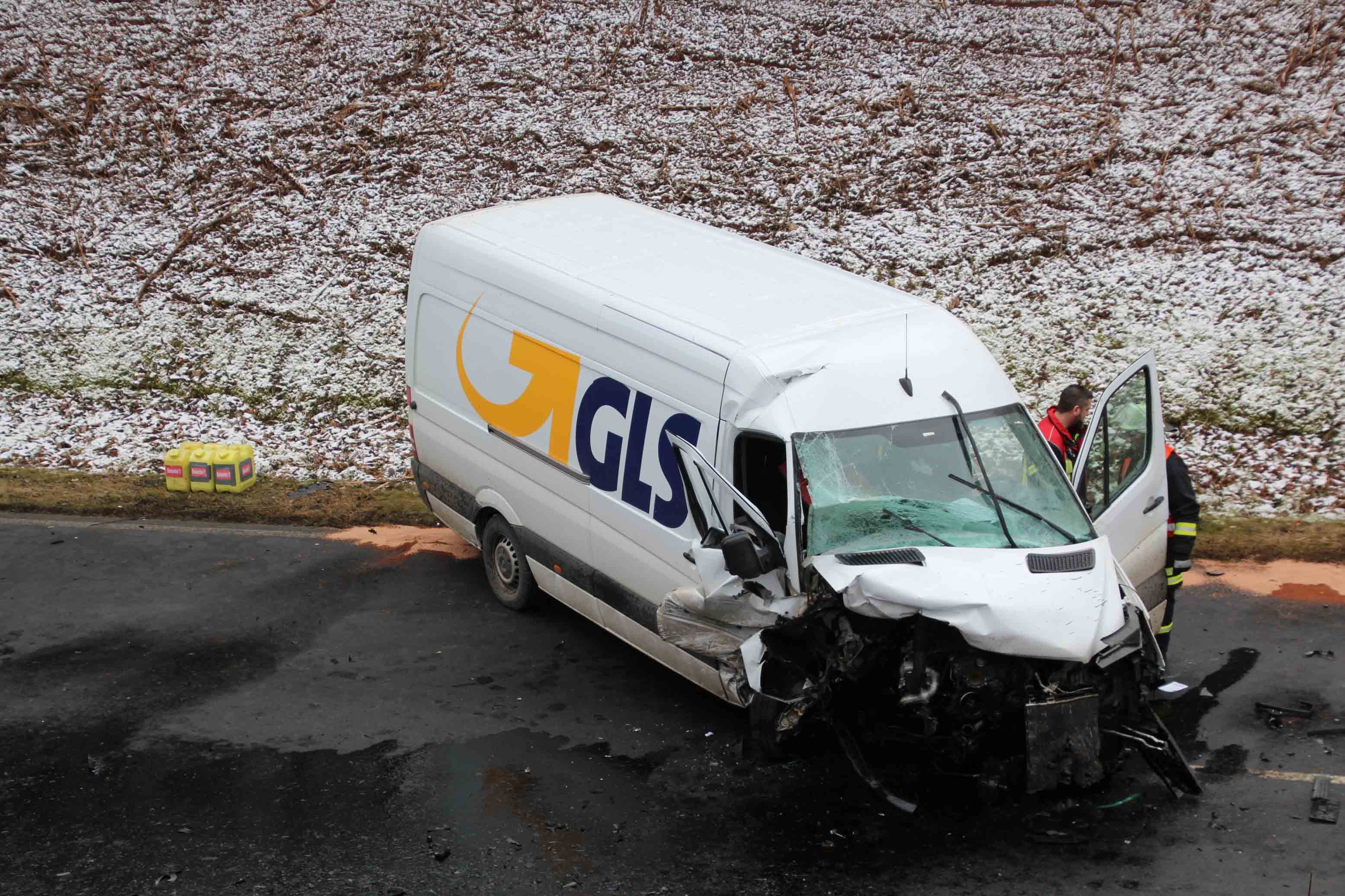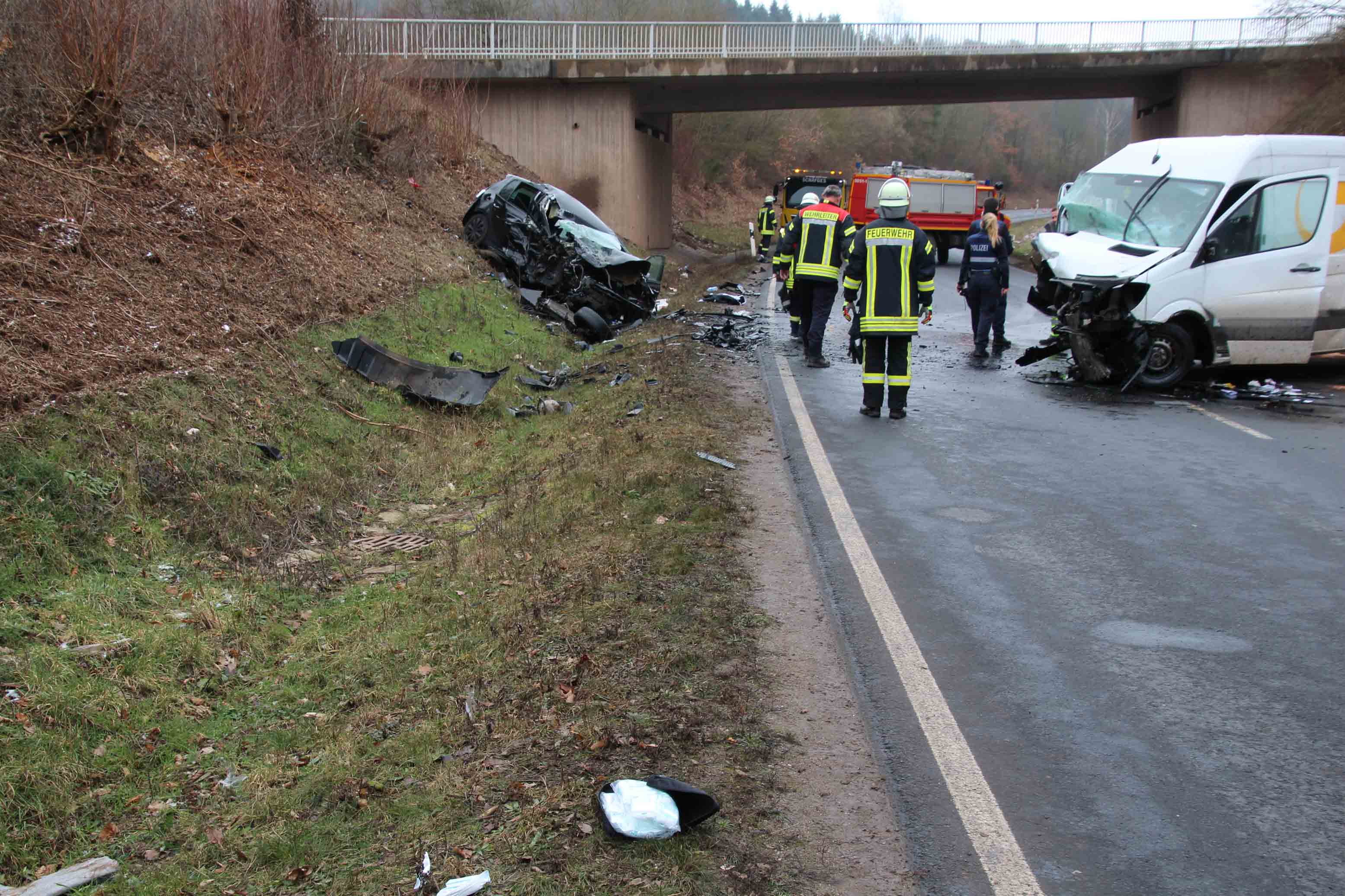 Klausen/Salmtal. Bei einem Frontalzusammenstoß am heutigen Freitagmittag gegen 12.:25 Uhr kam es auf der L 47 zwischen Samltal und Klausen im leichten Kurvenbereich zu dem heftigen Zusammenstoß zwischen einem PKW und einem Kleintransporter.